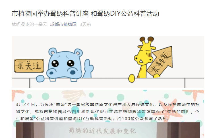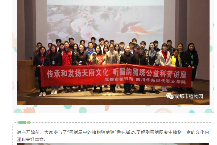 举办蜀绣科普讲座和蜀绣DIY公益科普活动