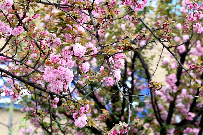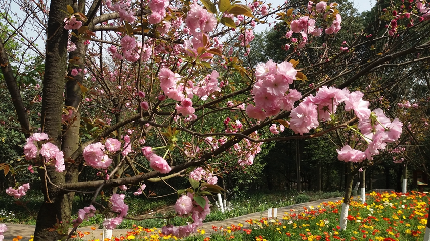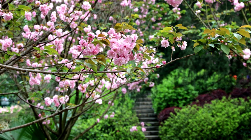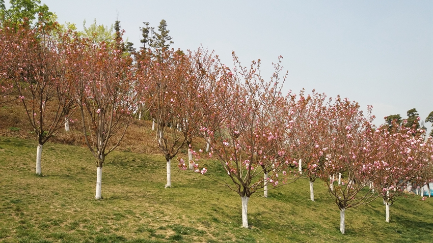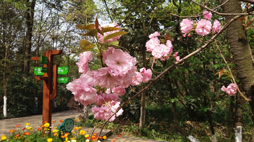 3月下旬,已是日本晚樱的天下,也是欣赏樱花的上佳时节。另外,园内的菊花桃、西府海棠等也正好盛开,还有配植的草花区,科普互动小品等,也都值得好好品味。