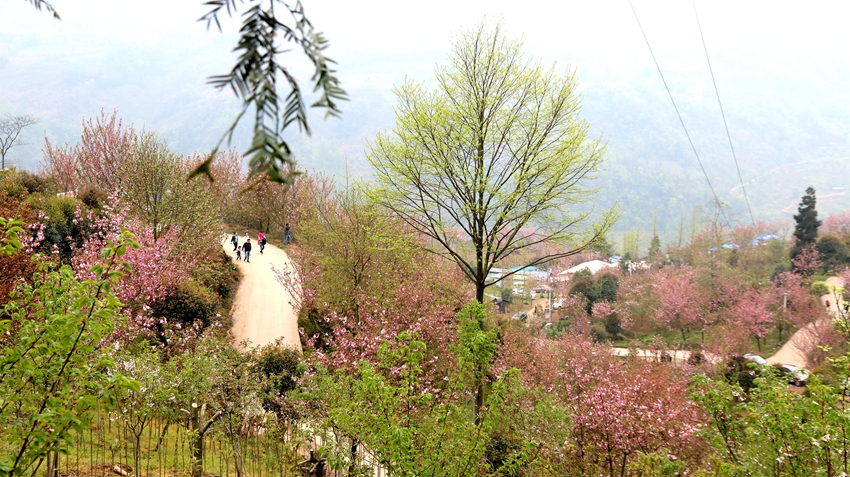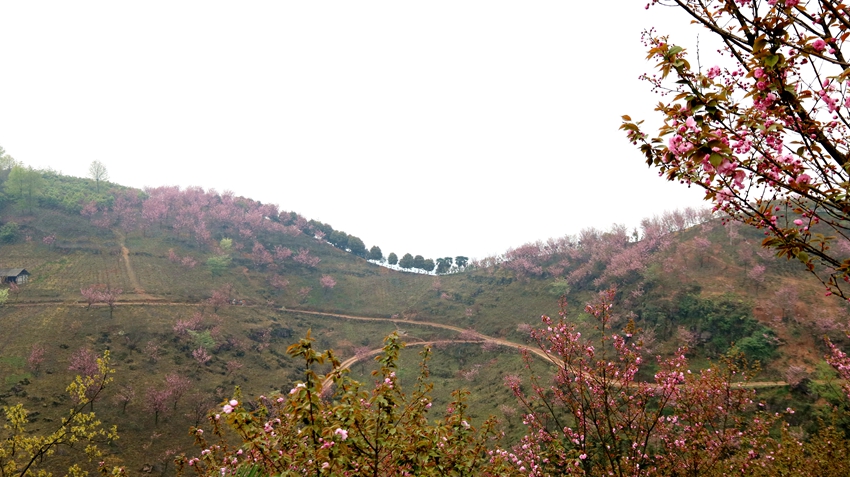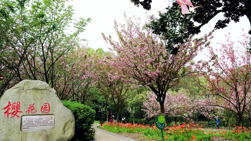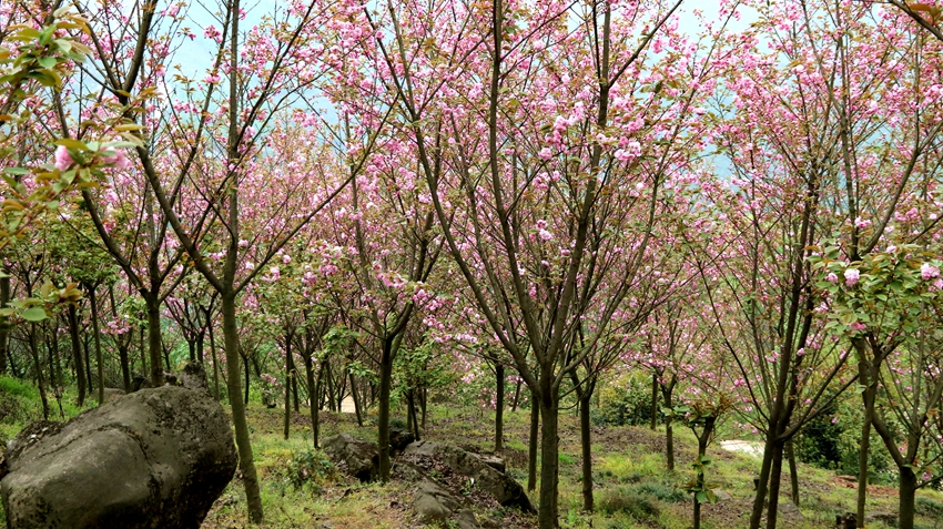 数千亩的樱花种植和观赏基地,收集有几十个樱花品种,主要有日本晚樱、日本早樱等20余种,颜色主要有大红、粉红、纯白和金黄等十余种。由于三郎镇的樱花品种多样,各个品种的盛花期不同,就形成了樱花渐次盛开的景象,整个赏花期可持续1个多月。基地山势起伏,步道蜿蜒,游客可在这里一边赏樱,一边体验爬山的乐趣。