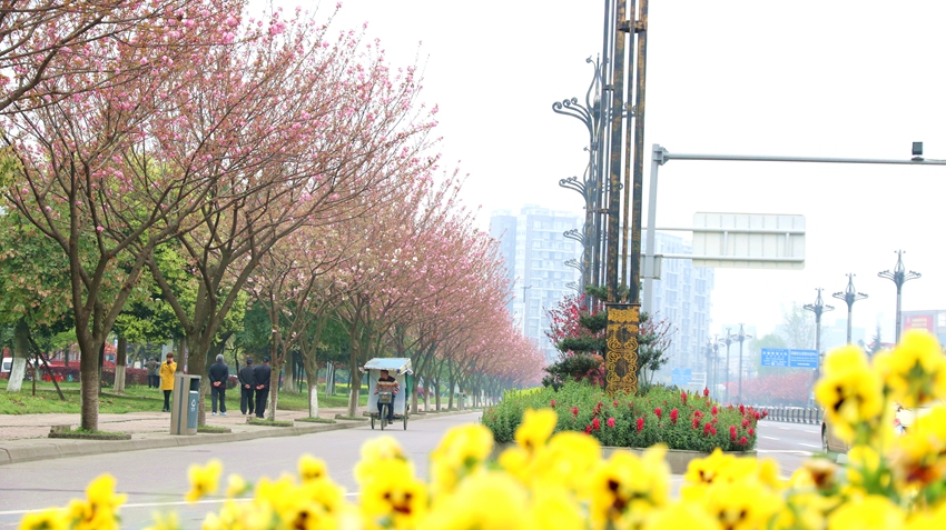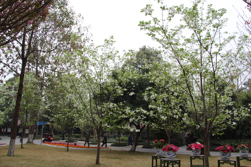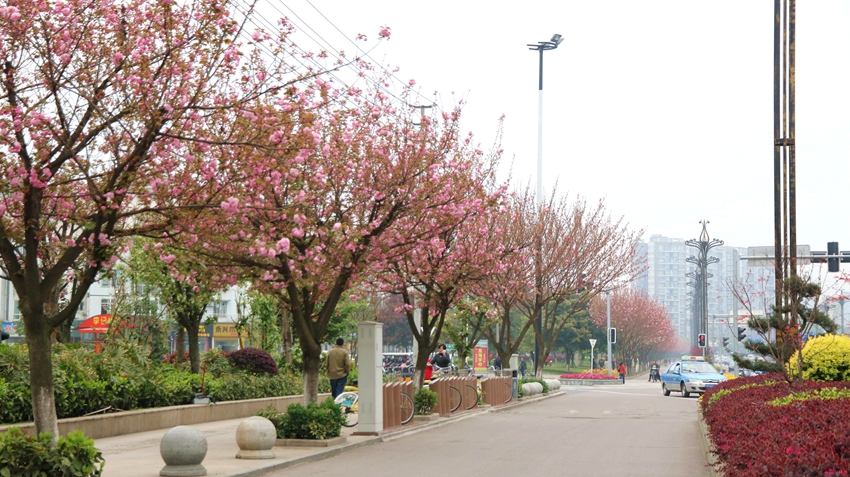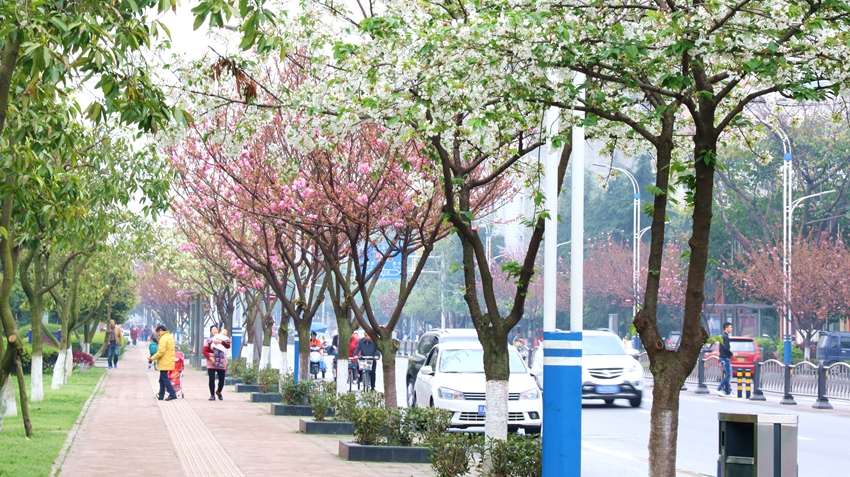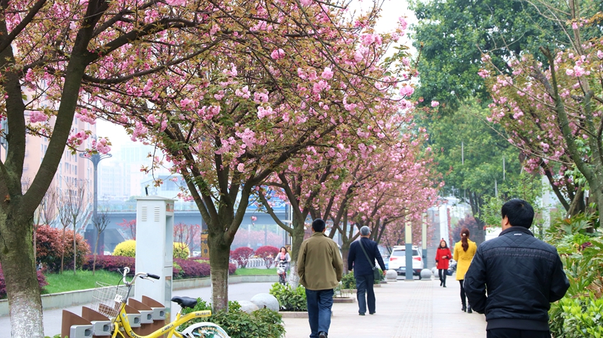 随着 “花重锦官城——成都市增花添彩”项目的推进,市区道路、绿地新种植了不少花树。樱花在市区道路应用不断增加,除了已有的双元路、武侯祠大街,三环路北段、一环路九眼桥、芙蓉西路、凤凰东路、二环路人南立交、后子门等道路、绿地新种植了千余株樱花树。