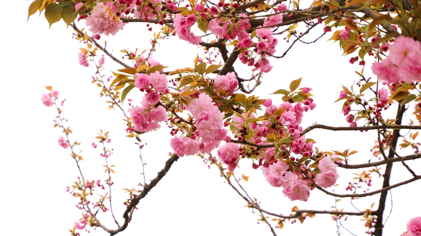 樱花为蔷薇科樱属中观花种类,为落叶乔木或灌木,品种极多,花型花色各具特色,盛开时节满树烂漫,白似飘雪压枝,粉似薄云绕树,红如朝霞染林,极为壮观,是春季重要的观花树种。