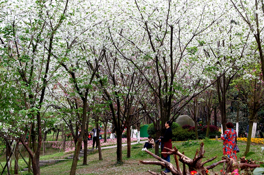 2019青白江樱花旅游节目前拉开了序幕,吸引了各方游客前来欣赏浪漫樱花,樱花节期间还有丰富多彩的科普、娱乐活动供游客参与。