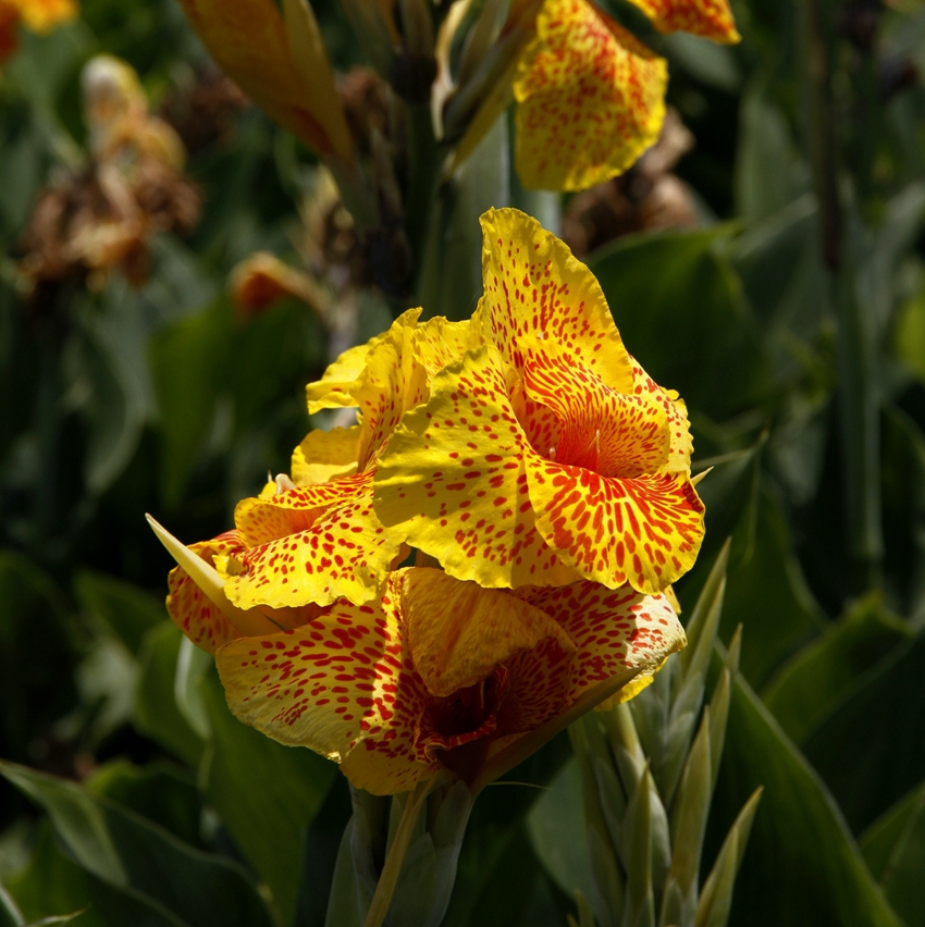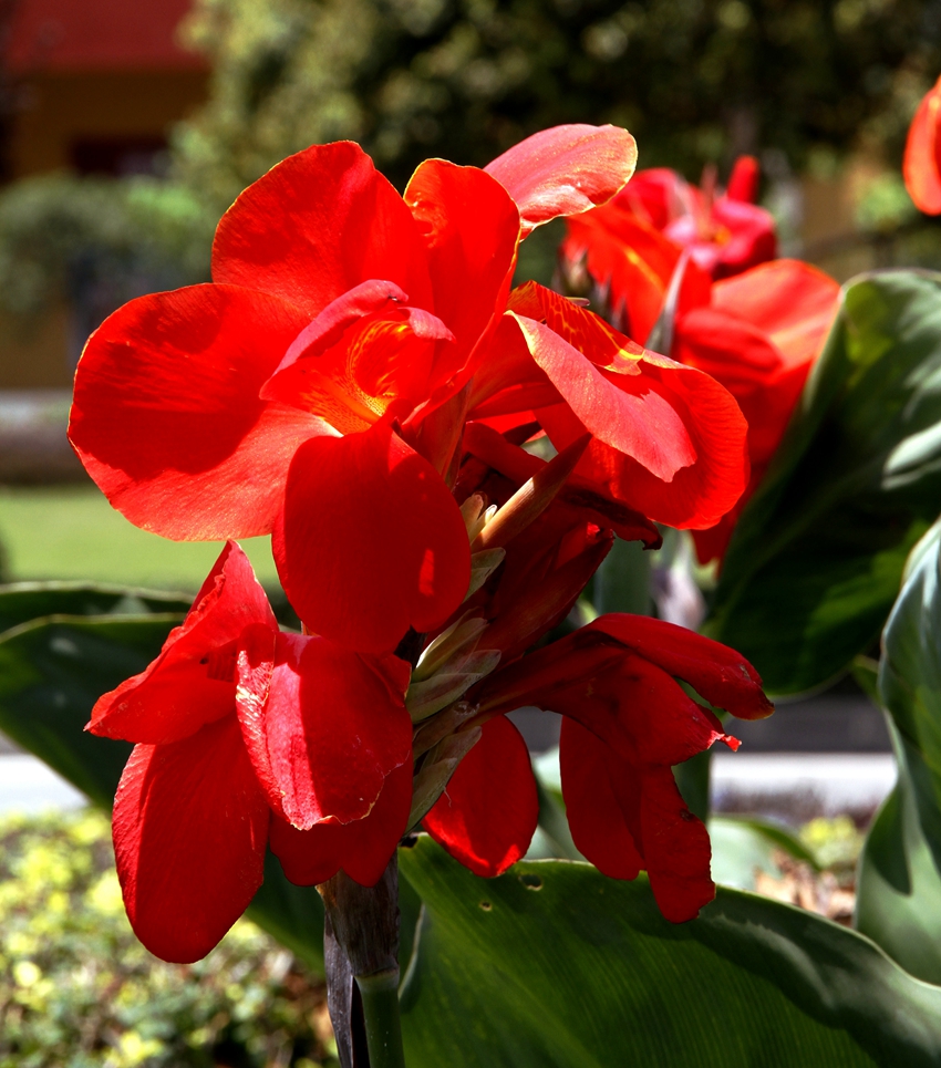 美人蕉是美人蕉科美人蕉属草本花卉,是少有的单科单属植物,约55种,产美洲的热带和亚热带地区,我国南方常见引种栽培约6种。美人蕉属植物有旱生,也有水生,应用方式很多,曾在园林绿化中风靡一时,不仅公共绿地有很多应用,家庭园艺中也常有种植。不过随着新的绿化材料大量涌现,美人蕉也逐渐失去昔日繁荣,但我们仍然可以在不少公园绿地中见到它艳丽的身影。