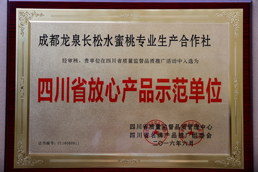 长松水蜜桃专业生产合作社成立于2008年,水果种植面积6000亩,水蜜桃种植面积约3000亩;2011年合作社建立了四川省水蜜桃科普示范基地,先后引进国内外160余新品种在园区内进行展示,已培育筛选出多个适合当地发展的新品种水蜜桃;2012年被国家农业部认定为无公害水果生产基地;2013年取得了有机产品认证;2014年“长松水蜜桃”商标被评为成都市著名商标。