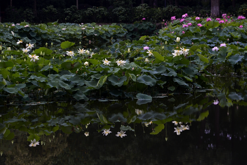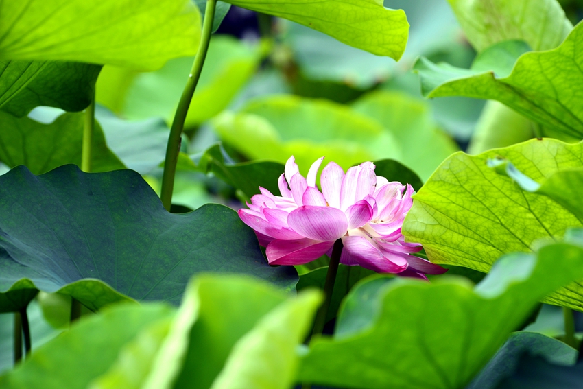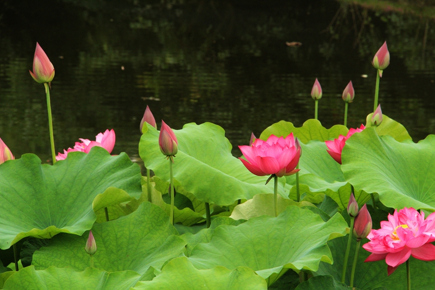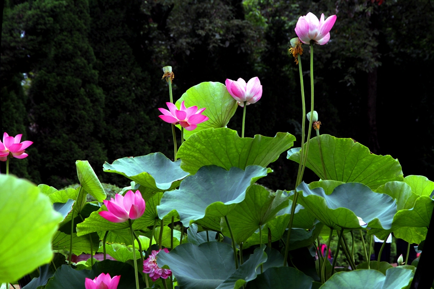 公园水体种植的荷花,别有一番观赏荷花的感觉。