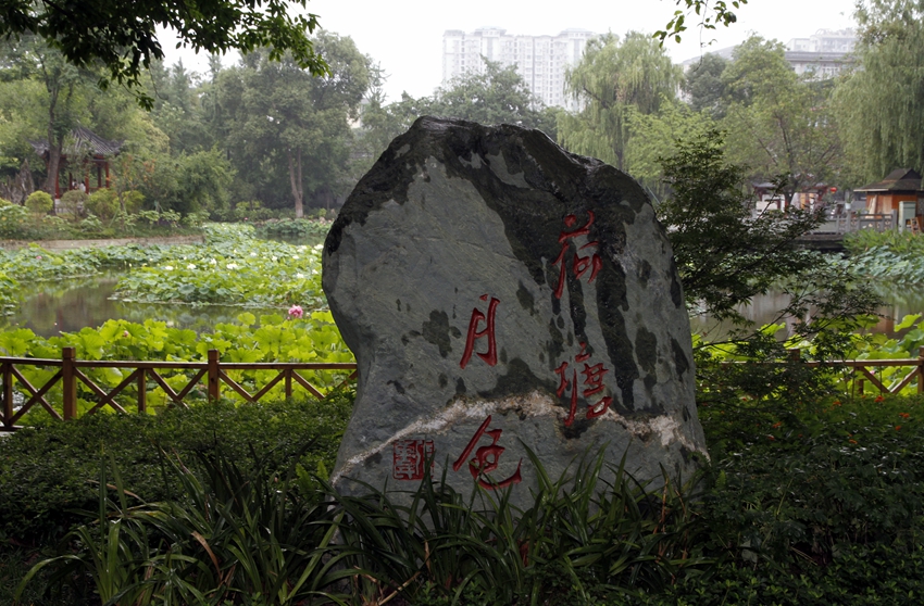 约30亩荷塘,红花荷叶相映,弱柳清风微拂,亭台楼阁隐现,古风古韵尽显。