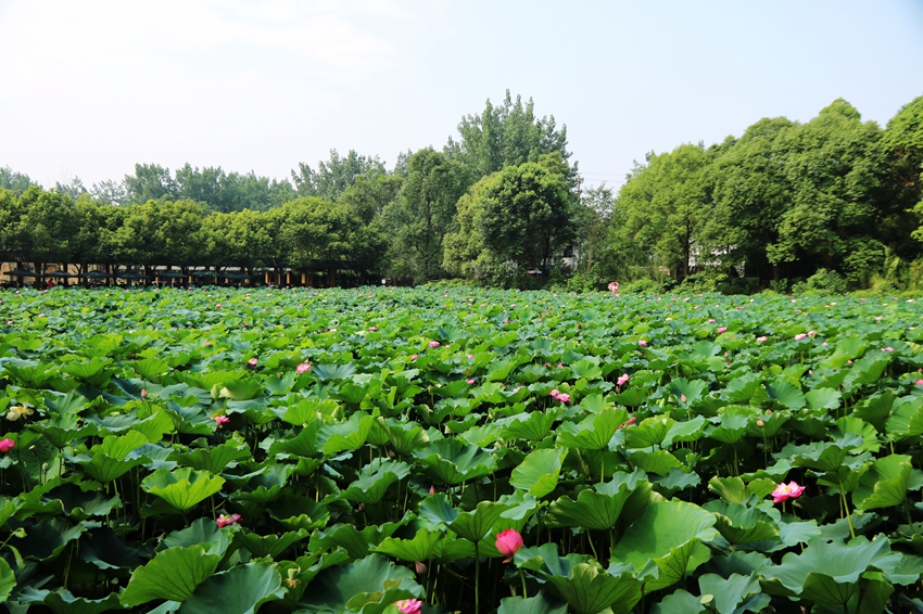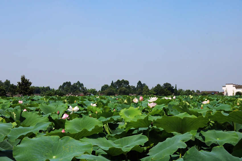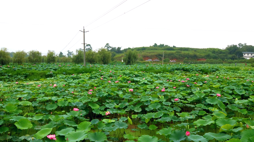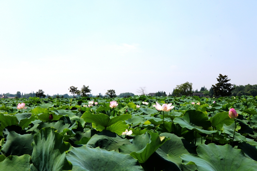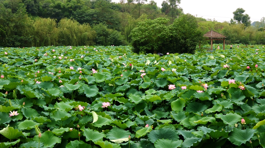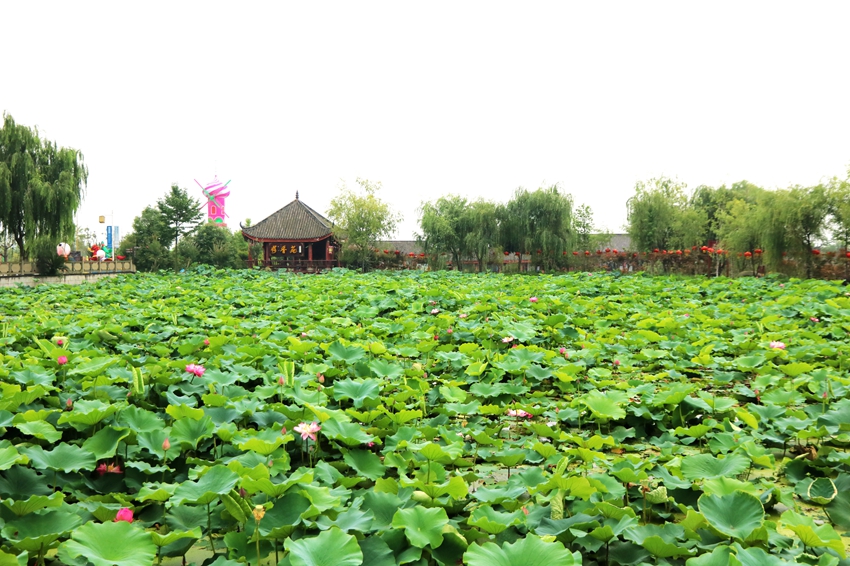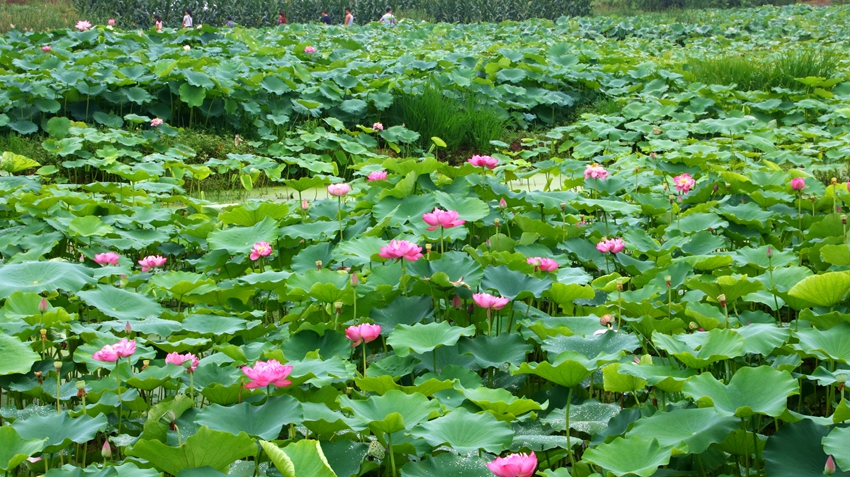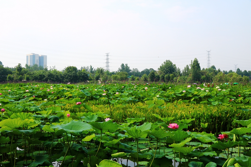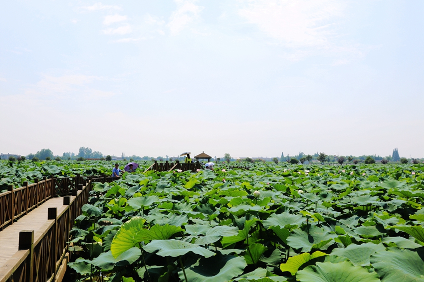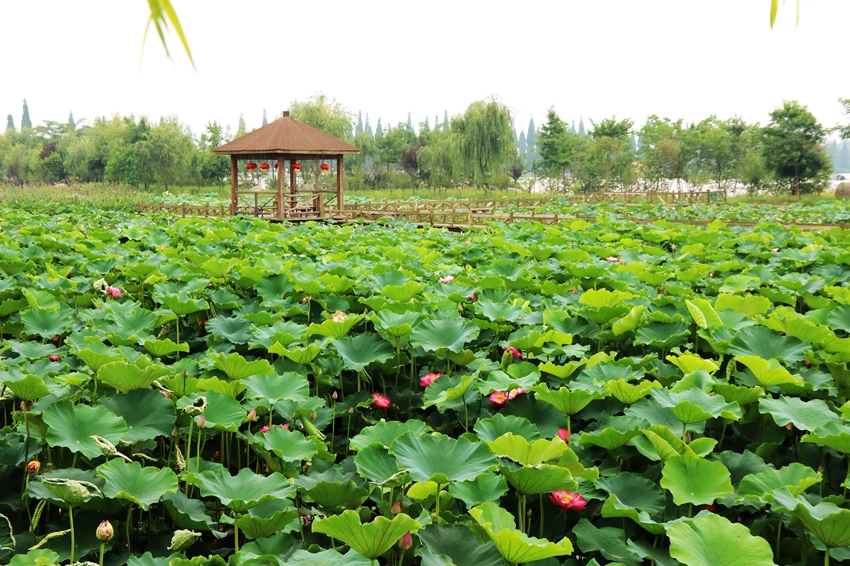 景区内种植莲藕千余亩,配套建有赏荷亭、观荷走廊等。