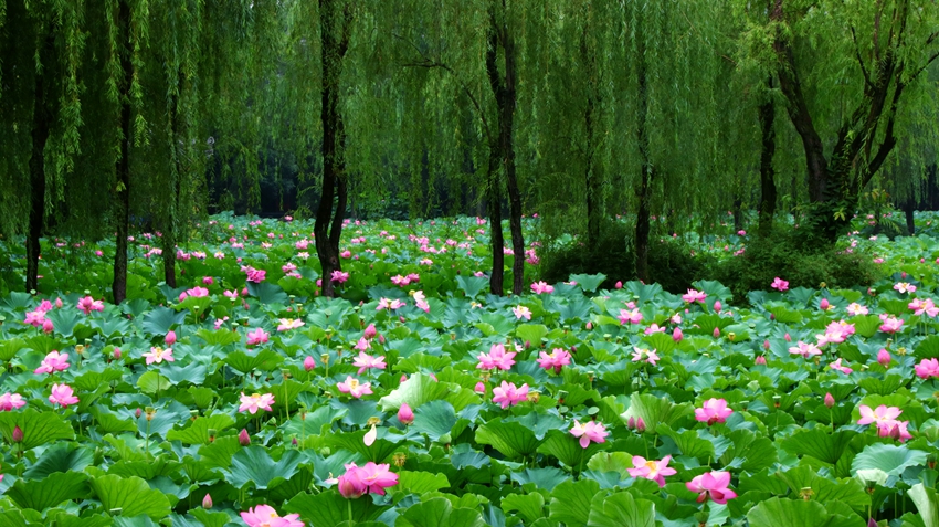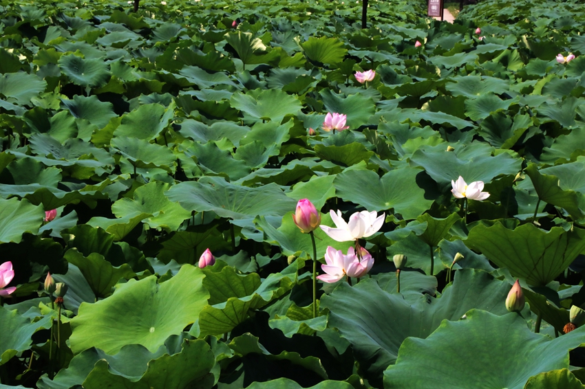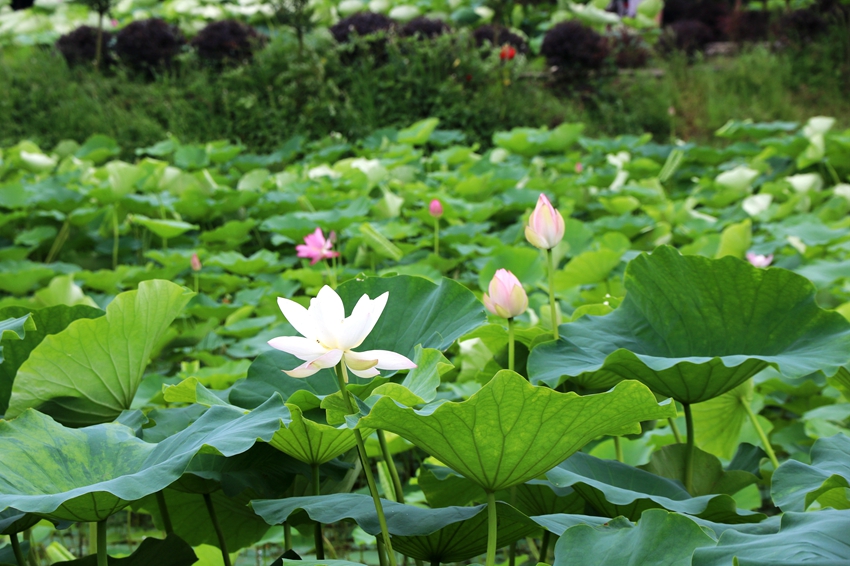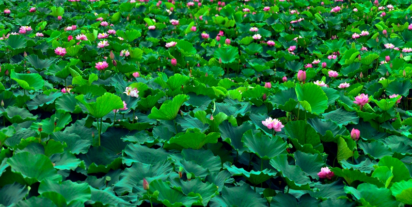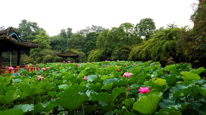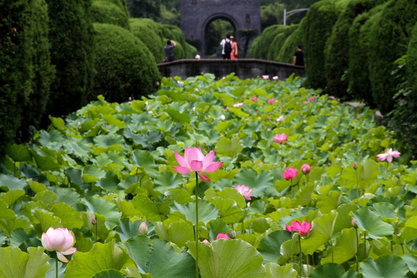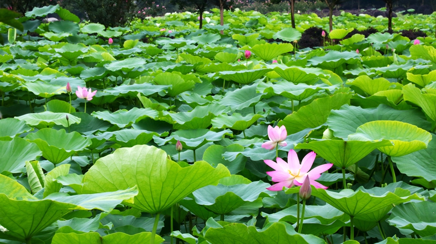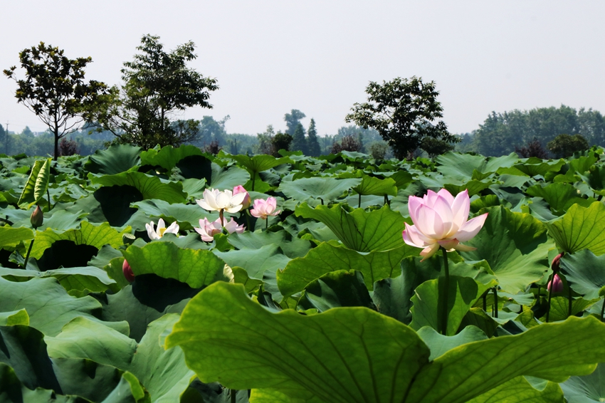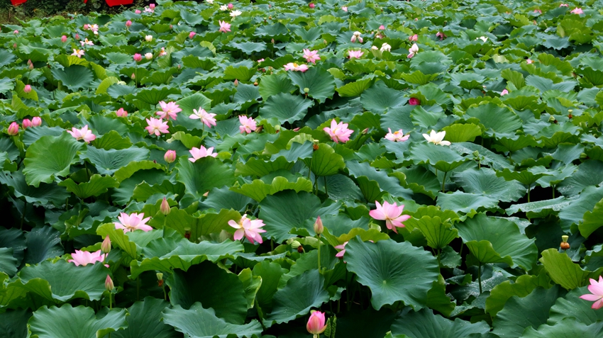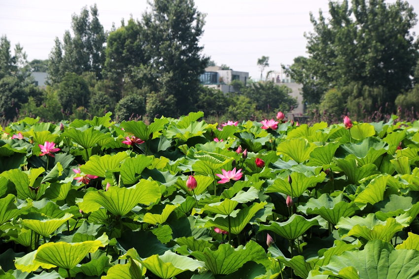 景区内种植莲藕千余亩,配套建有赏荷亭、观荷走廊等。