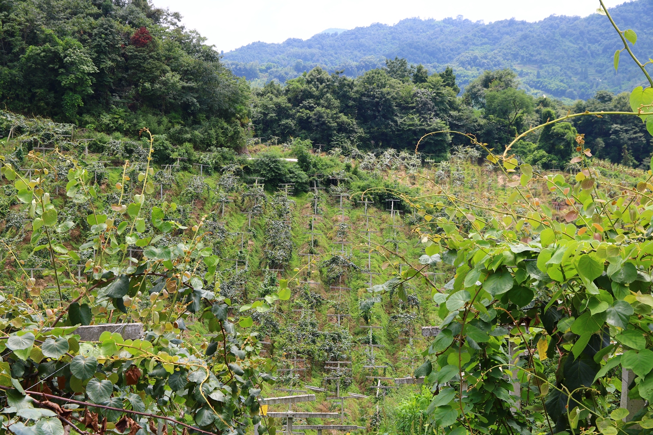 园区内猕猴桃依山势种植,环境质量好,猕猴桃品质达绿色食品标准。主要有红阳、金艳、金果等品种。