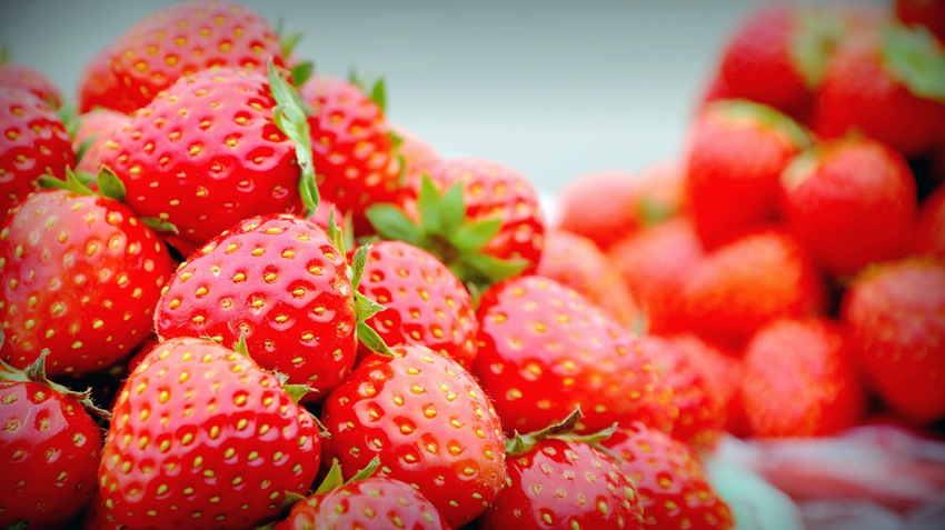 草莓为蔷薇科、草莓属多年生草本,食用的草莓是该种植物的花托膨大了的浆果,其外观呈心形,鲜美红嫩,果肉多汁,含有特殊的浓郁水果芳香。现代草莓栽培品种起源于亚洲、欧洲、美洲野生种的杂交后代,其中亚洲有11个种,美洲有3个种,欧洲有2个种。草莓营养丰富且容易被人体消化吸收,多吃也不会受凉或上火。中医草莓入药堪称上品,现代医学研究认为草莓对胃肠道和贫血均有一定的滋补调理作用。
