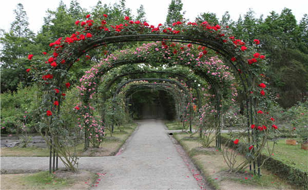 五月玫瑰四季庭苑占地面积70000m2,主景区为正统的19世纪法式古典玫瑰庭苑:完整保留中国田园风貌,兼具法国庭苑的优雅、日本庭苑的精致。园内展示有1800个玫瑰品种10万多株珍贵玫瑰,以芳香玫瑰为主题,收藏有约瑟芬珍奇古典玫瑰;以法国戴尔巴德为代表的画家派玫瑰展示现代玫瑰的多姿多彩,堪称庭苑式玫瑰博物馆。