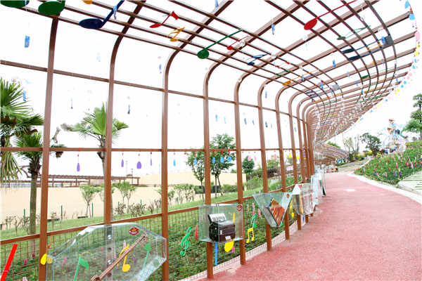 萌宝牧场:各类萌宠动物,羊驼,小香猪,孔雀,土拨鼠,小矮马等。无动力乐园:供成人可玩的游乐项目,夏威夷沙滩乐园,戏水踩沙滩,彩虹滑道等。美食集市:特色老字号美食小吃聚集地,老麻抄手,酸辣粉,粉肠粉,猪脚饭,云南米线,炸鸡烤肠等。琴深意长:白樱花种植区,每年3月,白樱花开放于钢琴键步梯旁。