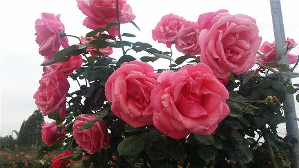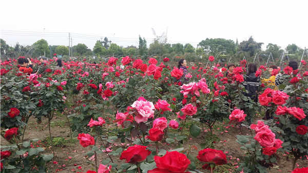 新津玫瑰花海位于成新蒲快速路旁新津界,面积400亩,主要展示的树桩月季是其最大特点,花大色艳,热闹喜庆。