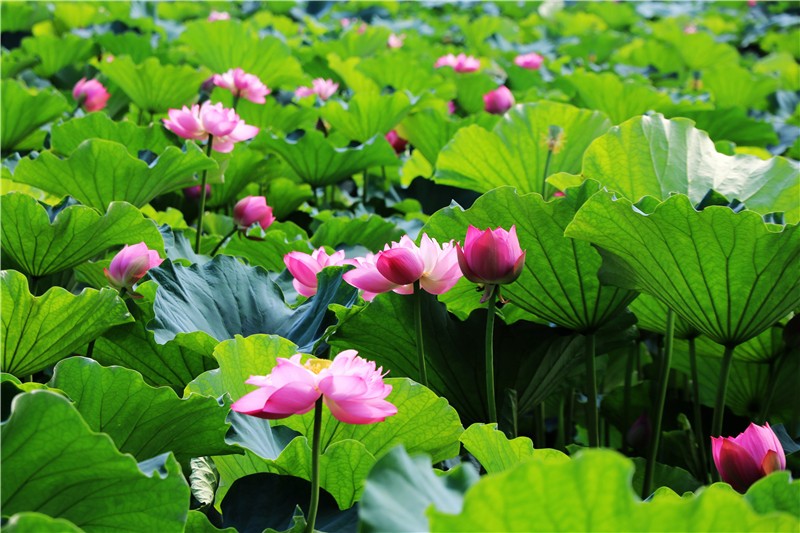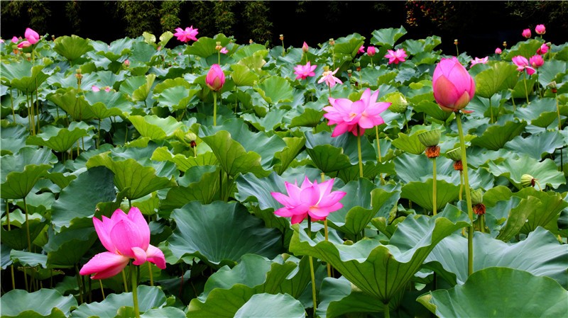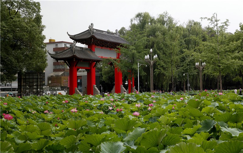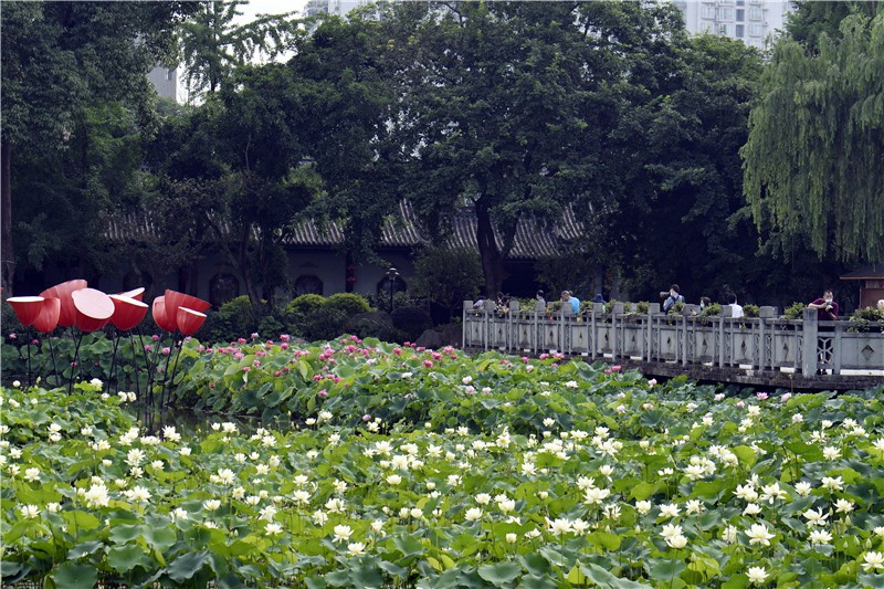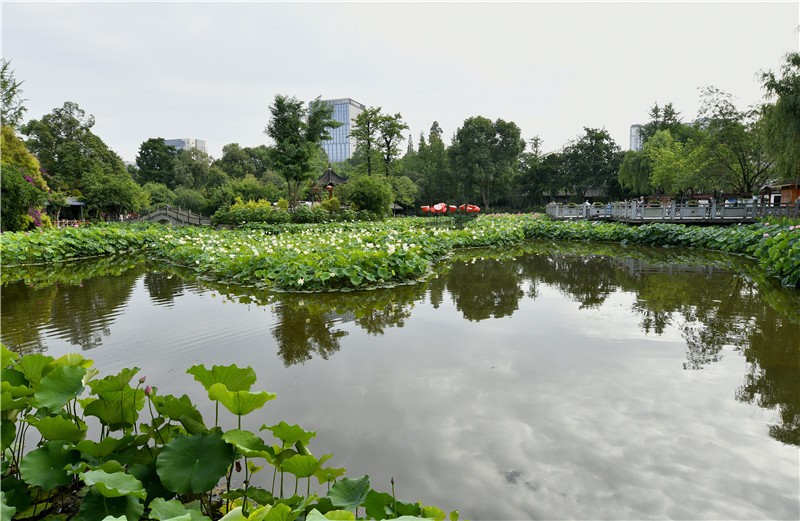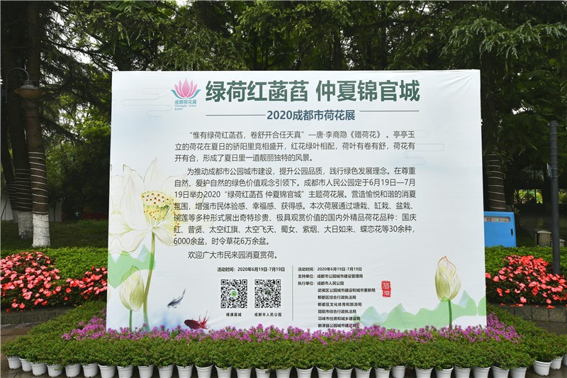 人民公园2020年“绿荷红菡萏 仲夏锦官城”为主题的荷花展于6月19日已拉开帷幕,将持续到7月19日。本次荷展通过塘栽、缸栽、盆栽、碗莲等形式展出精品荷花30余个品种,6000余盆荷花,还有60000余盆时令草花,供游客免费游览。