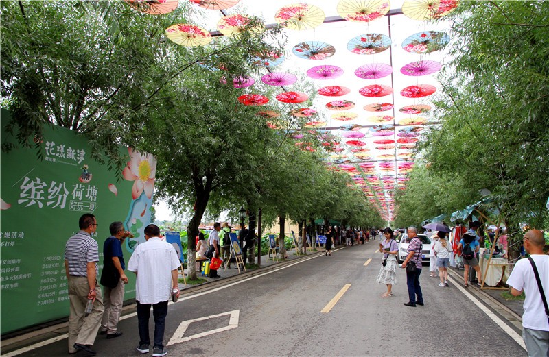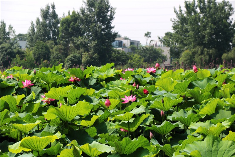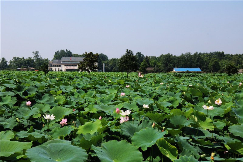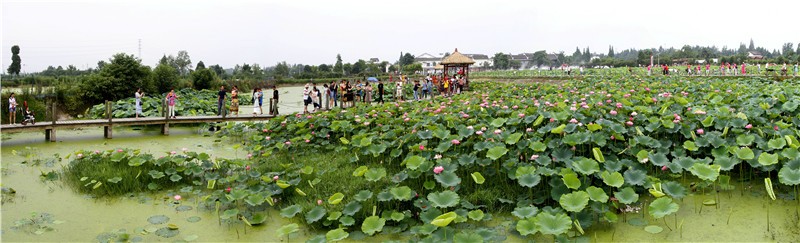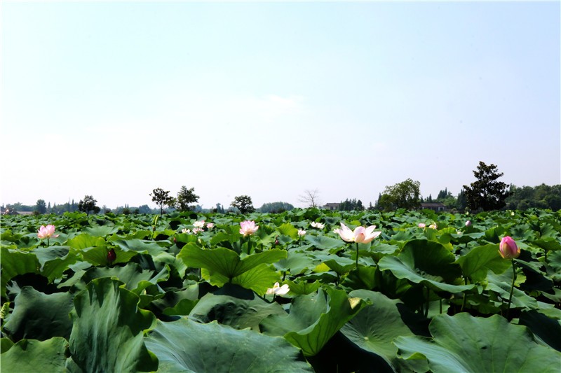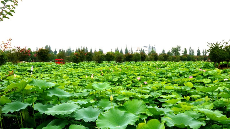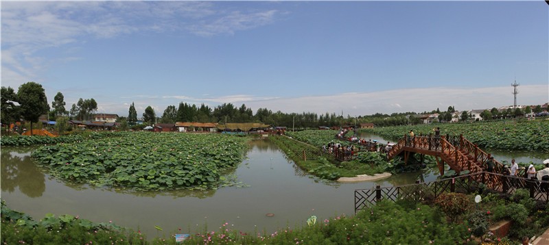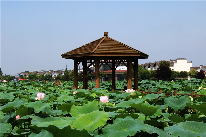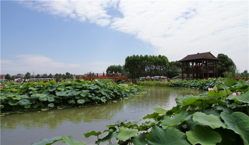 景区内种植莲藕千余亩,配套建有赏荷亭、观荷走廊等。