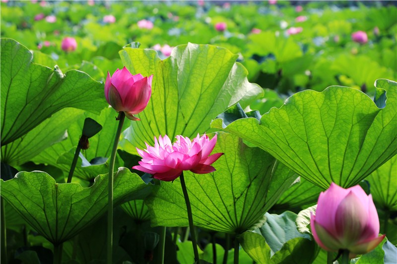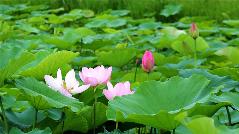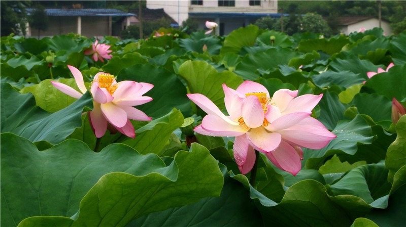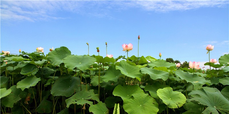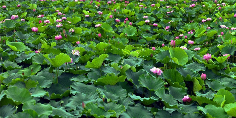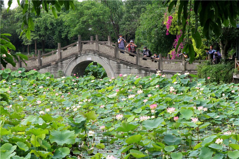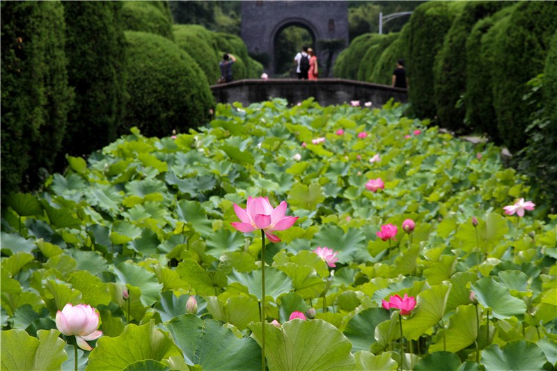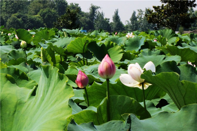 景区内种植莲藕千余亩,配套建有赏荷亭、观荷走廊等。