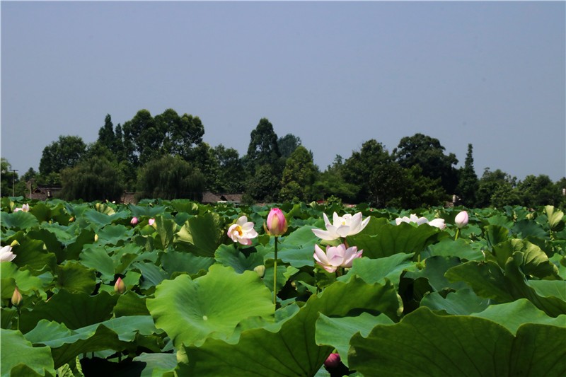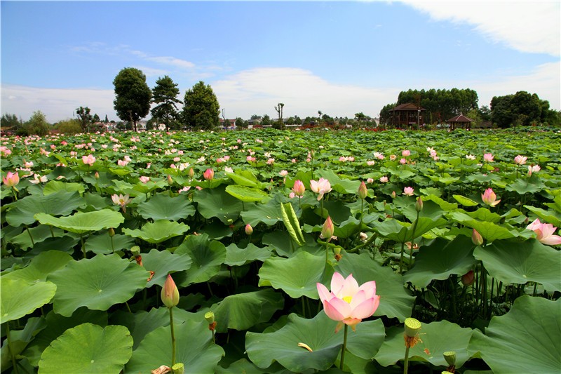 景区位于新津安西镇方兴社区,面积2000亩,其中核心观赏区500亩,观赏荷花30余种。千亩荷塘的碧色风光,宛若田园画卷,是成都近郊赏荷好去处。