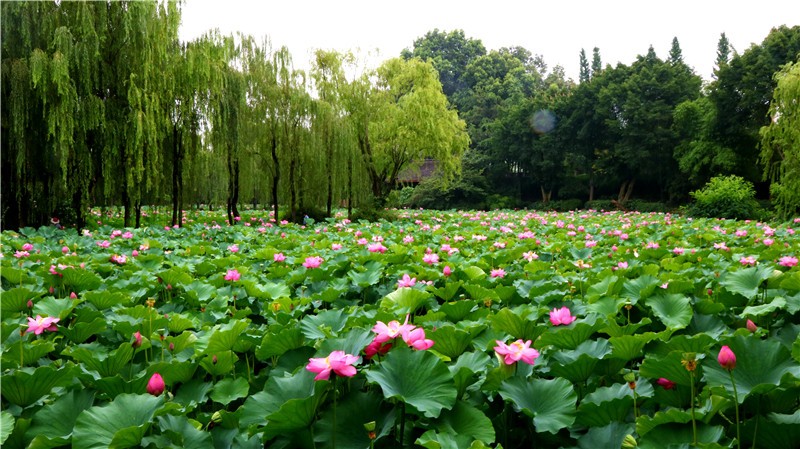 200亩以上荷塘,步道多植紫薇,既可观荷花,又可赏紫薇。