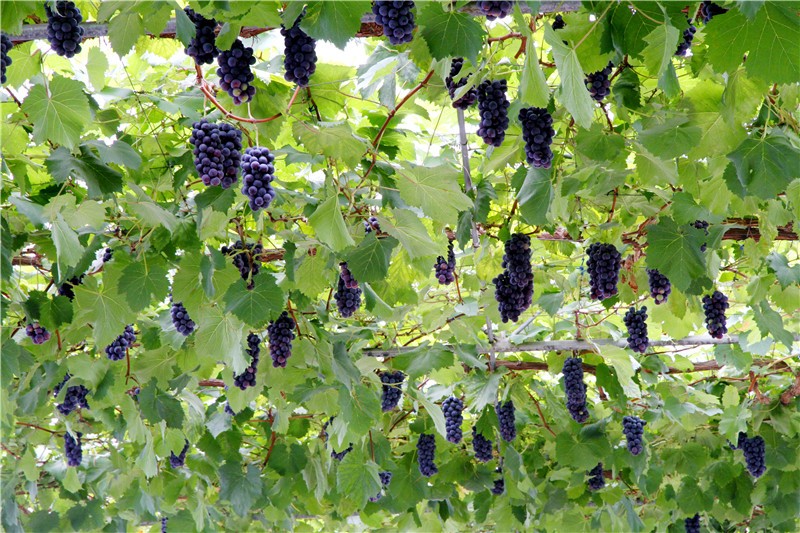 葡萄是葡萄科葡萄属木质藤本,葡萄属有60余种,分布于世界温带或亚热带,我国约38种。葡萄果熟期一般在6-8月,是夏季著名的水果,也是酿酒原料,世界各地栽培历史悠久。《汉书》言∶张骞使西域还,始得此种,而《神农本草》已有葡萄,则汉前陇西旧有,但未入关耳。