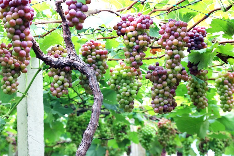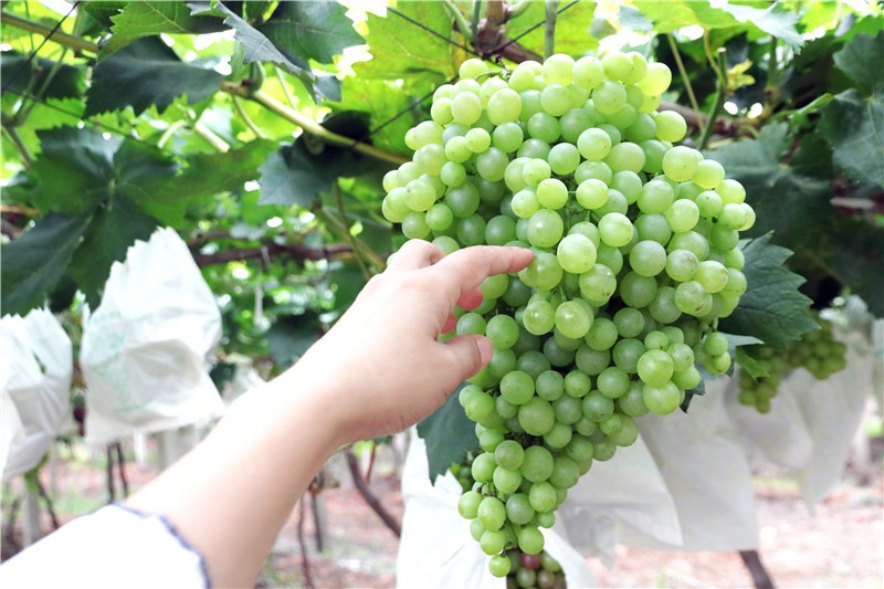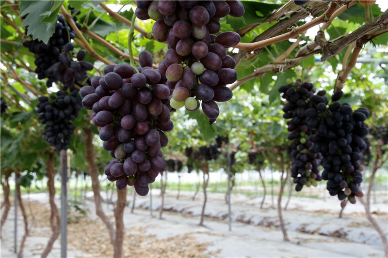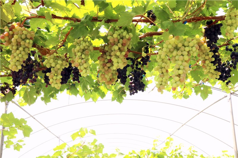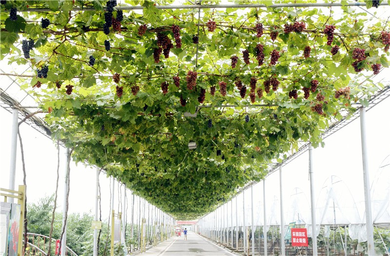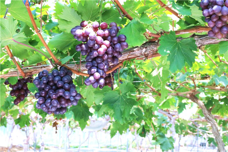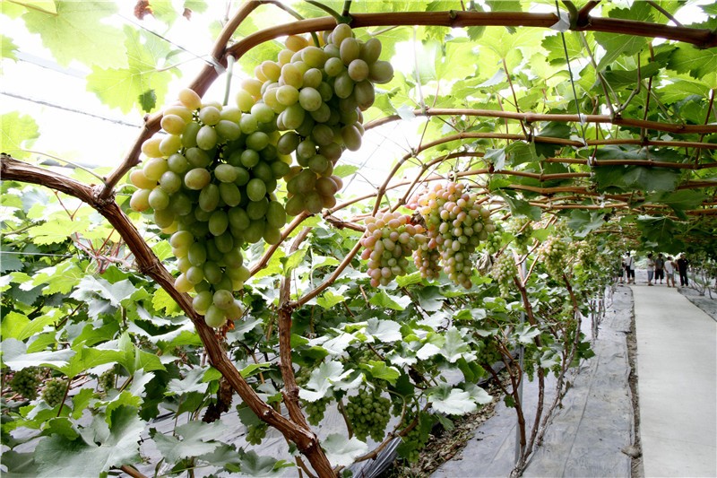 规划面积1200亩,目前可采摘葡萄大棚栽培园区300余亩,主要品种有金手指、美人指、粉红亚多密、 白罗莎里奥、东方之星、红地球、黑巴拉多、温克、维多利亚、秋红、阳光玫瑰、醉金香、巨玫瑰、赤霞珠、夏黑、京亚等20余品种,还有今年新品种甜蜜蓝宝石。