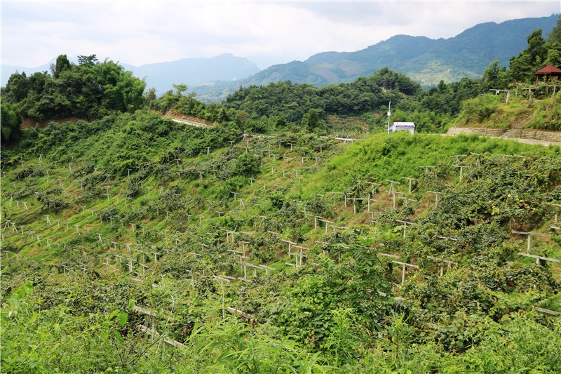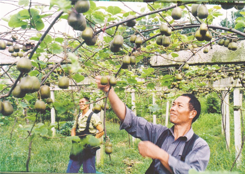 园区内猕猴桃依山势种植,环境质量好,猕猴桃品质达绿色食品标准。主要有红阳、金艳、金果等品种。