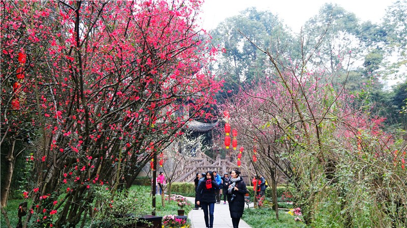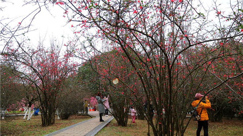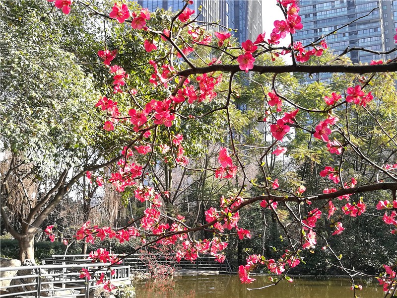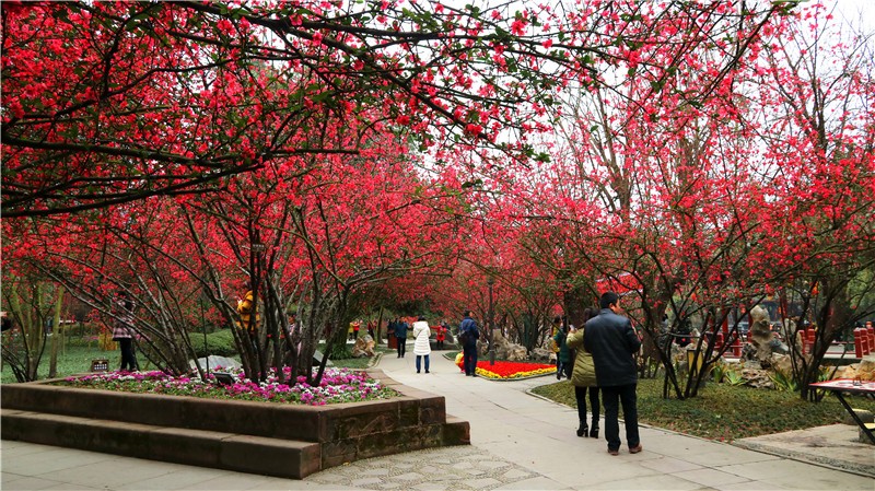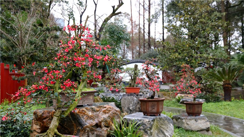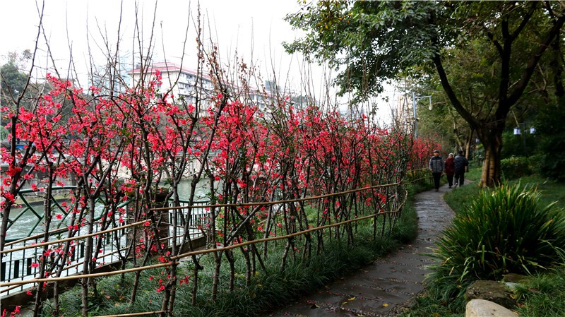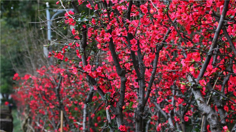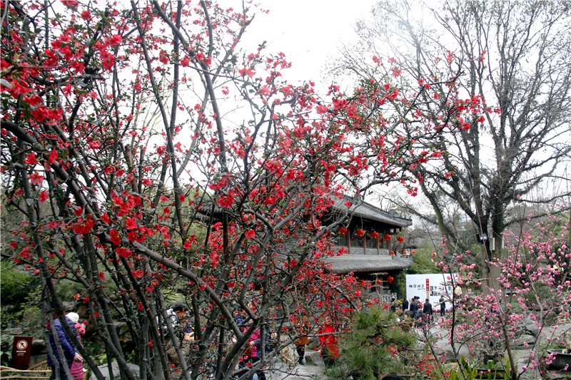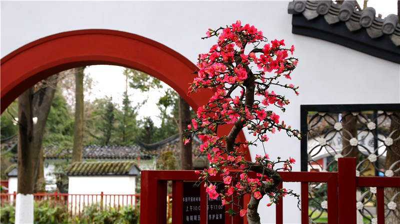 2月可在百花潭公园东大门府南河边观赏到贴梗海棠,占地约为281㎡;同时还有贴梗海棠、红梅、茶花、腊梅等开花盆景展出。