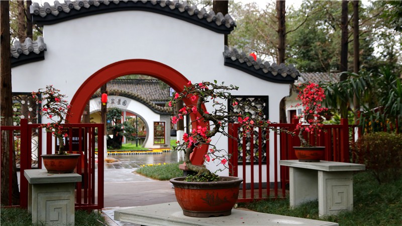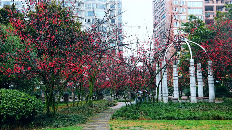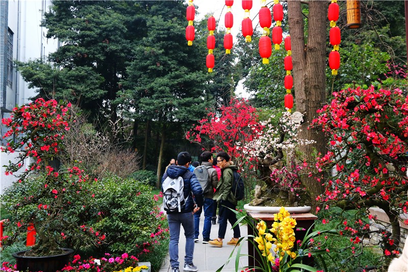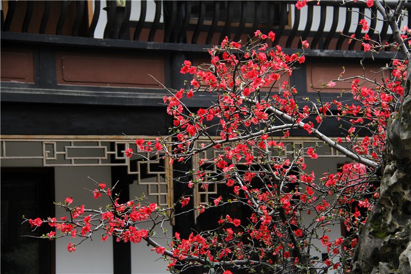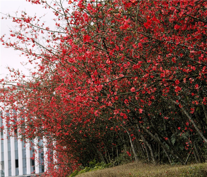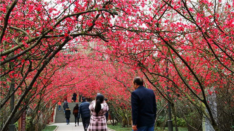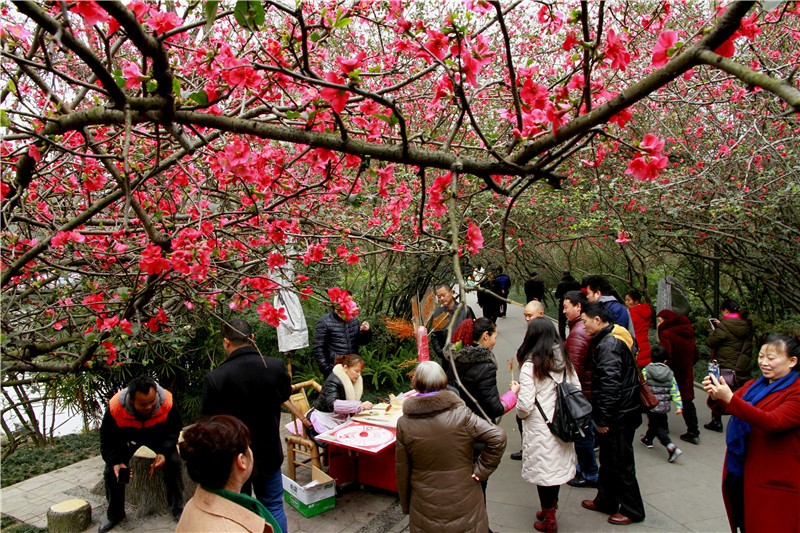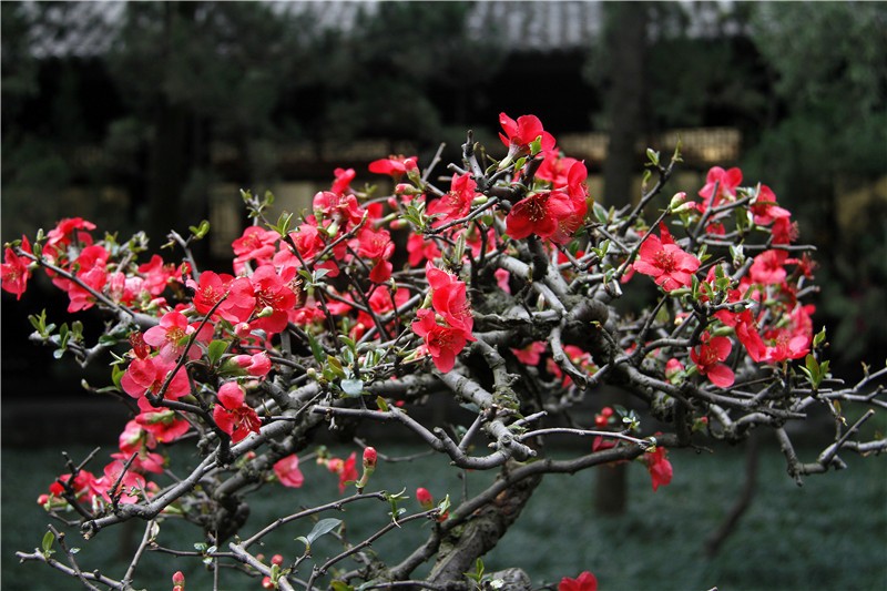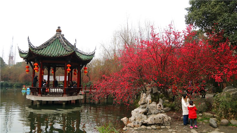 2月可在百花潭公园东大门府南河边观赏到贴梗海棠,占地约为281㎡;同时还有贴梗海棠、红梅、茶花、腊梅等开花盆景展出。