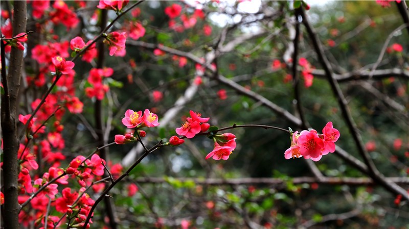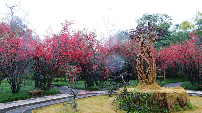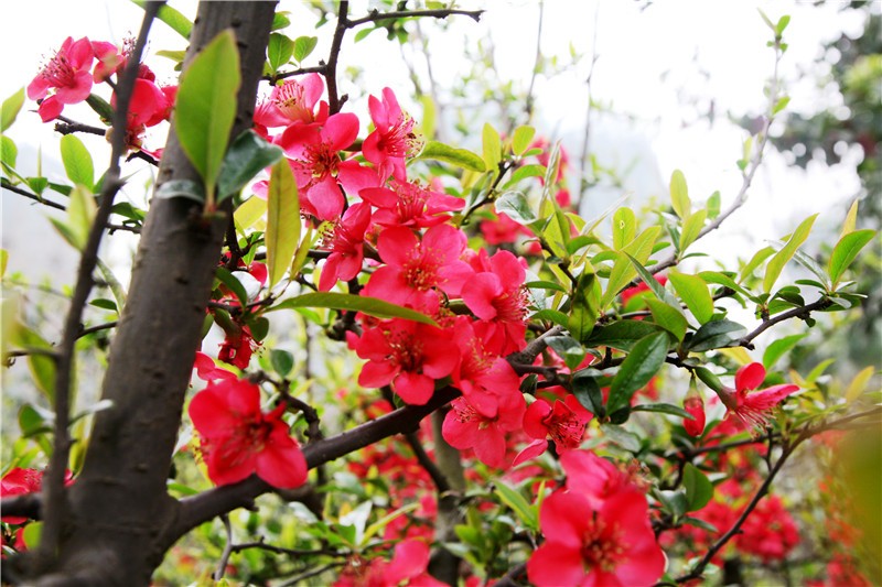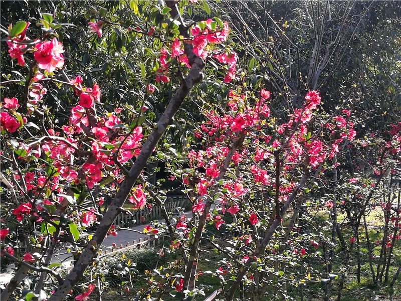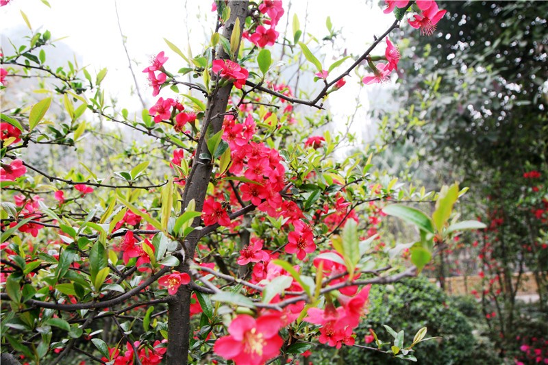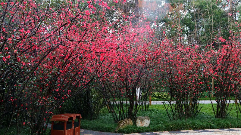 2月基地不仅有可爱的熊猫,多处还可赏贴梗海棠!