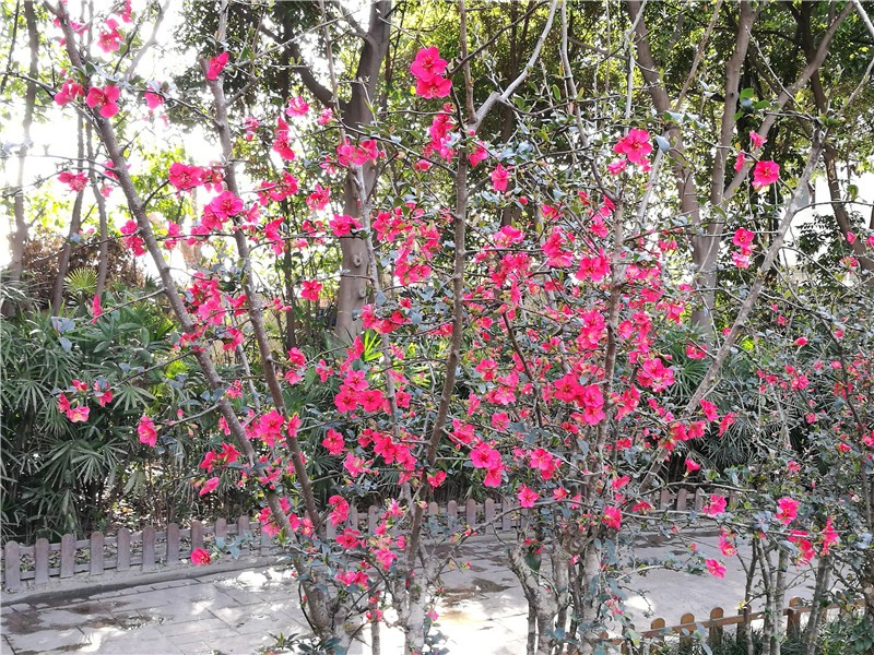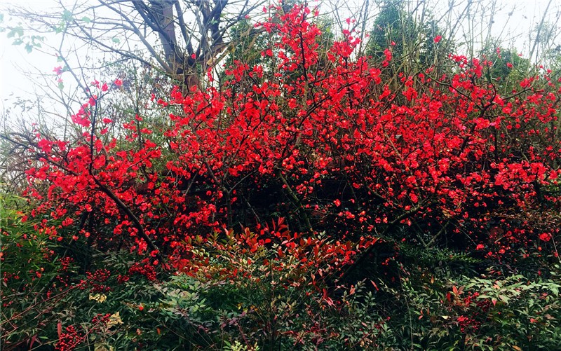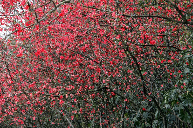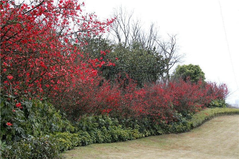 除可各种动物外,2月还可在园区观赏到300余平米火红的贴梗海棠。
