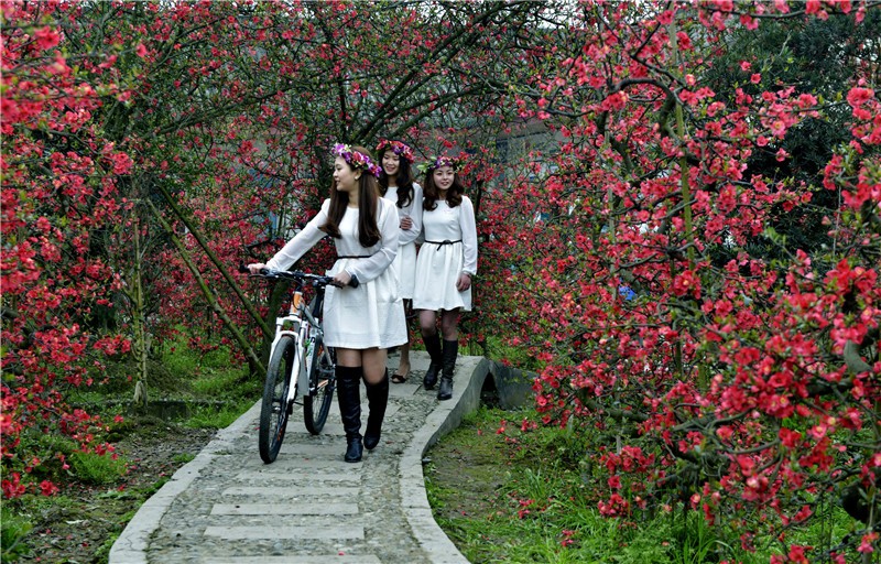 友爱镇农科村种植海棠面积 800余亩,主要以贴梗海棠为主,观赏长度达近8千米。