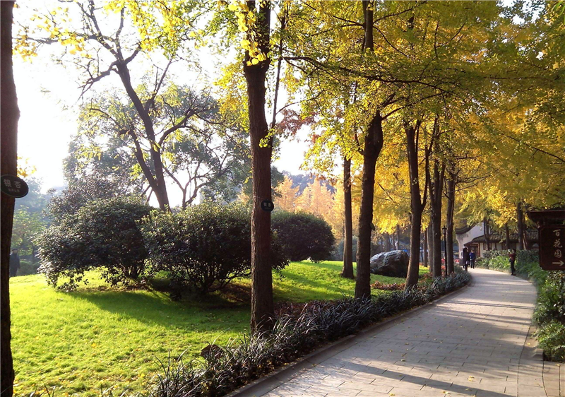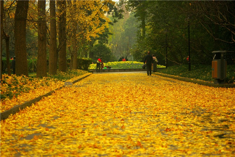 观赏种类:银杏、枫香。