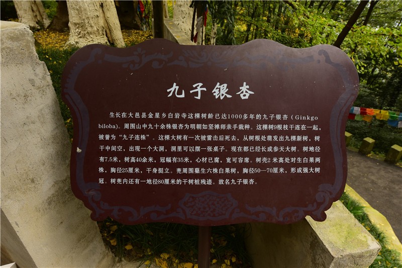 白岩寺为藏传佛教寺院,位于一块巨大的白色沉积岩下,故名白岩寺。寺庙具有独特的藏地风格,建有精致的印度佛塔。参天古银杏,多由明朝僧人所种,据说还有一株的历史可以追溯到夏商时代。