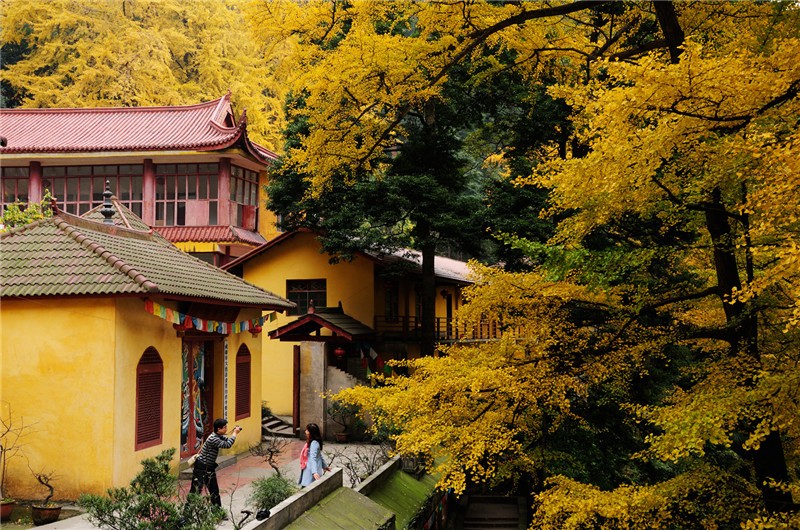 位于成都金堂县境内龙泉山脉中段, 云顶山以清幽奇丽闻名蜀中,有"云顶晴岚"胜景。在七佛岩侧有"云顶山"三大字,字迹古朴雄劲。其上为慈云寺,始建于南朝齐梁,历代几经兴废,现存建筑面积5494平方米,均系清代重建。寺前立一石牌坊,正面刻隶书《云顶禅林》。慈云寺及周边可欣赏银杏黄叶的美丽。