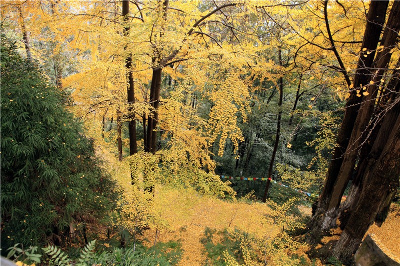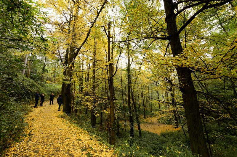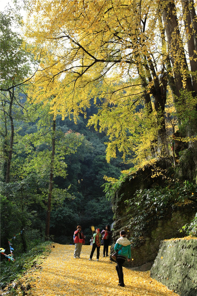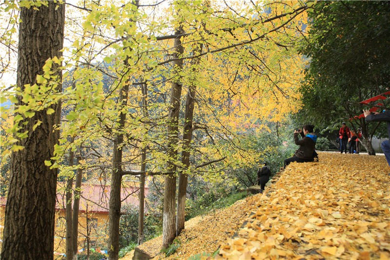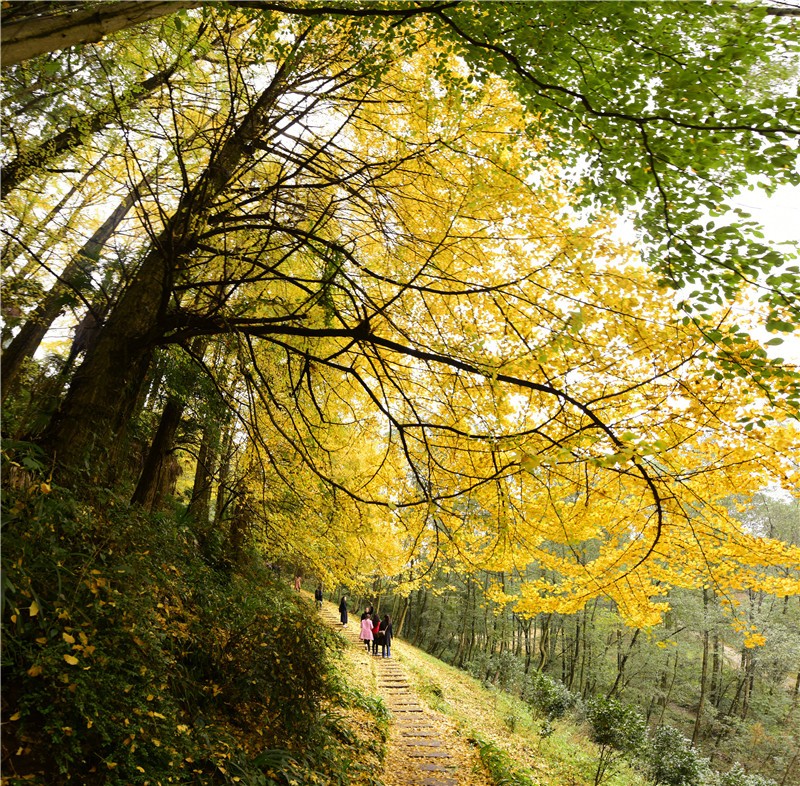 银杏坪景区内有几十株银杏,现已集中黄叶,具有一定冲击性的视觉效果。