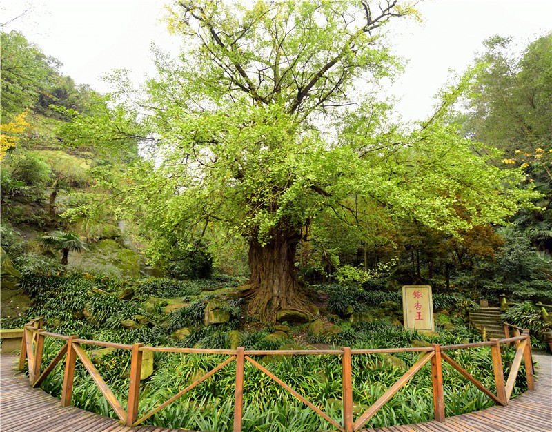 冰川瀑布景区内有一株2500年的“千年银杏”,号称“银杏王”。