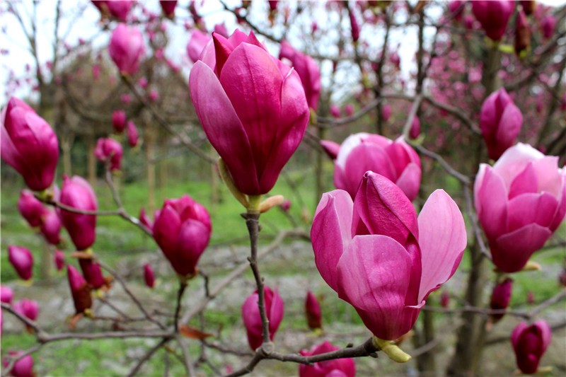 玉兰花古时多在亭、台、楼、阁前栽植。现多见于公园、绿地、厂矿、小区中孤植,散植,或于道路两侧作行道树。目前在成都武侯区绿博经济园附近、川陕路、龙泉成龙大道、郫县友爱镇均可看到不同种的玉兰花。