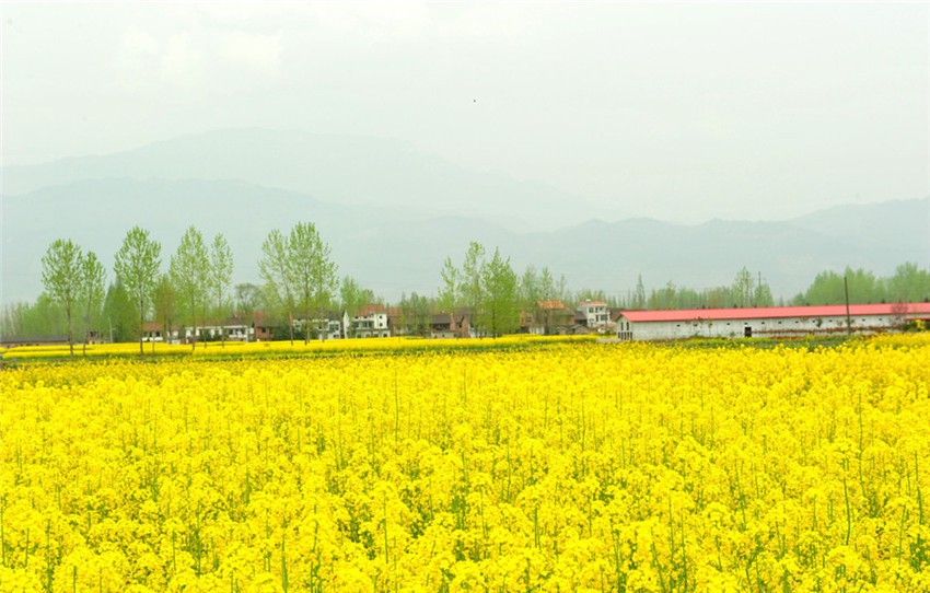 游古城镇,赏油菜花,三月初春,金灿灿的油菜花竞相盛放,黄澄澄的一片一直连接到天边。