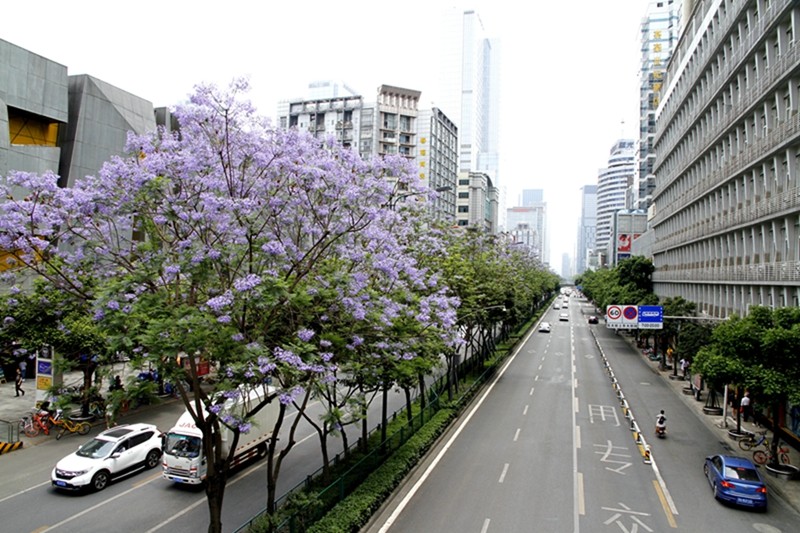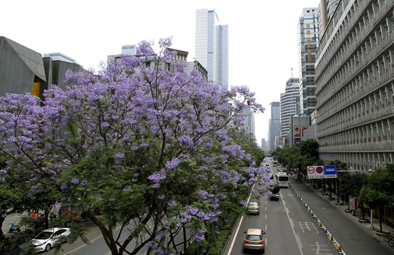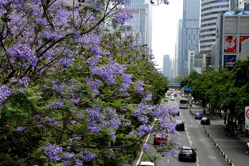 蓝花楹原产南美洲巴西、玻利维亚、阿根廷,在四川西昌也有不少种植,前段时间已有不少美图在网络流传,引起热议。在成都落户的蓝花楹也表现不错,开花比西昌稍晚,现在是盛花期。还没亲眼领略过蓝花楹魅力的朋友赶快到市区各街道、绿地转转,如画美景正等着你呢。