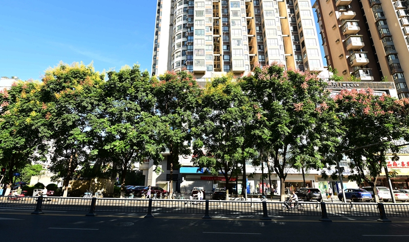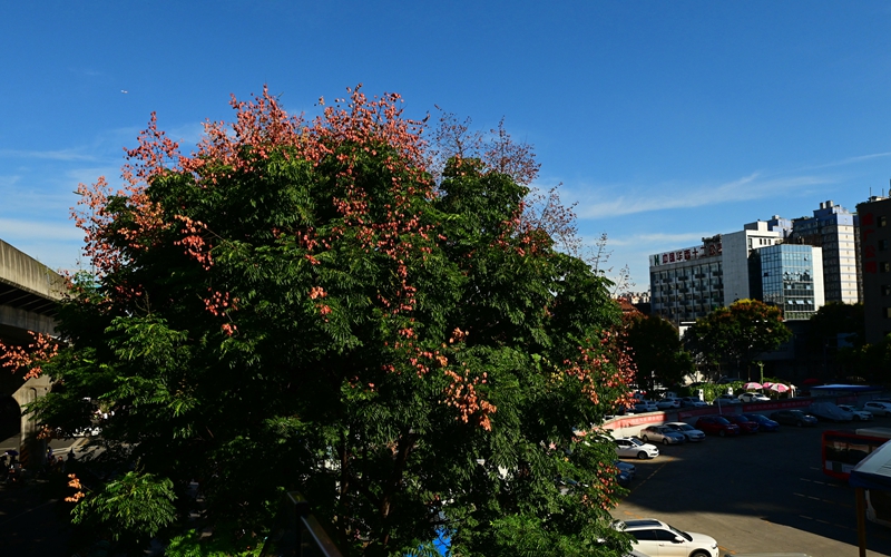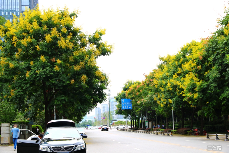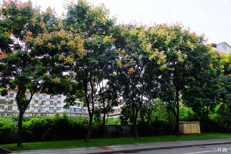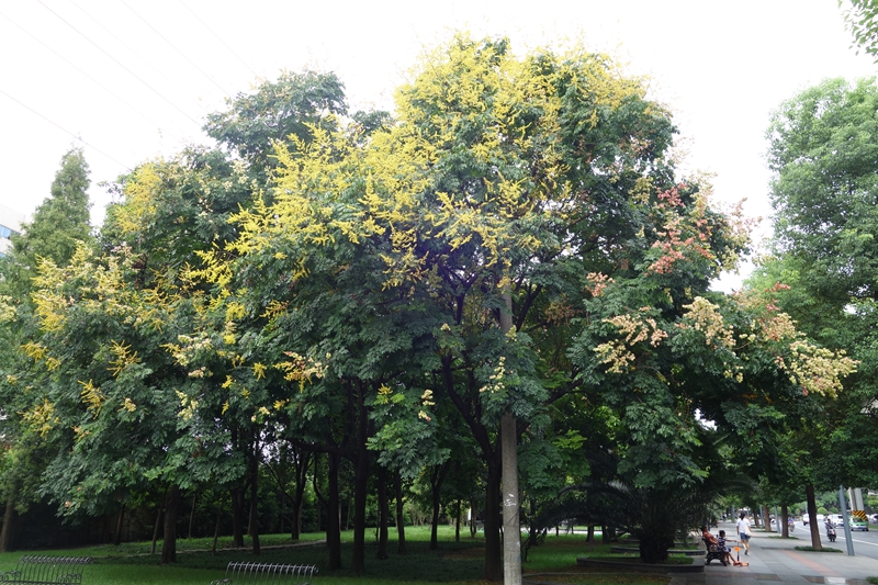 栾树属无患子科栾树属落叶乔木。栾树在初秋开金黄的花,结红艳的果,且花果量大,都有很好的观赏效果,是初秋少有的可形成艳丽色块的乔木。更兼栾树生长适应性强,病虫害少,耐寒耐旱,栽培管理简便,易于大苗移栽,单、丛、行种植皆呈不同风景,可为优良的庭园树、行道树。目前在成都市已被广泛应用,随着“花重锦官城”推进,今年早秋,栾树上黄灿灿、金灿灿的栾树花、果也得到了充分展现。