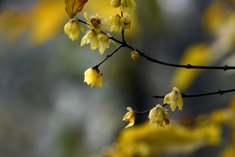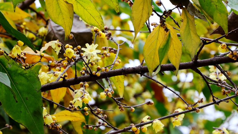 成都最为市民熟知的必然是三圣乡的幸福梅林了,这里蜡梅种植最多,与各色农家乐相得益彰。城市公园、绿地中也种植有不少蜡梅,正徐徐开。