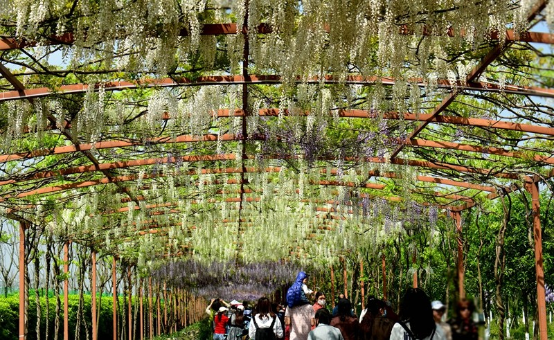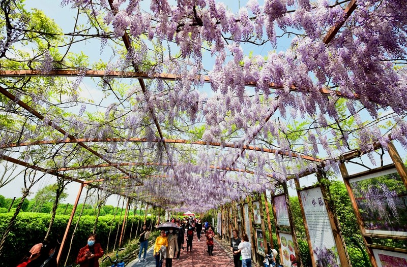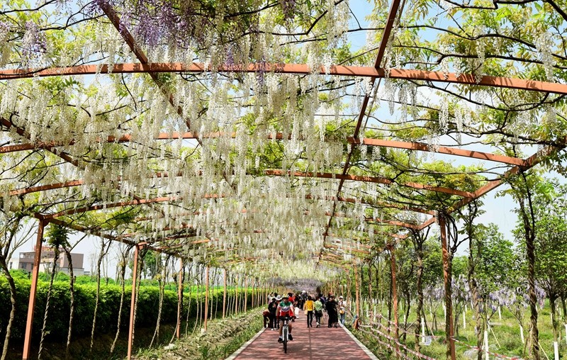 芳华桂城面积3100亩,其中有公里级的紫藤长廊,展示约20个日本、欧美、中国的紫藤品种,目前已是盛花,是理想的打卡地。