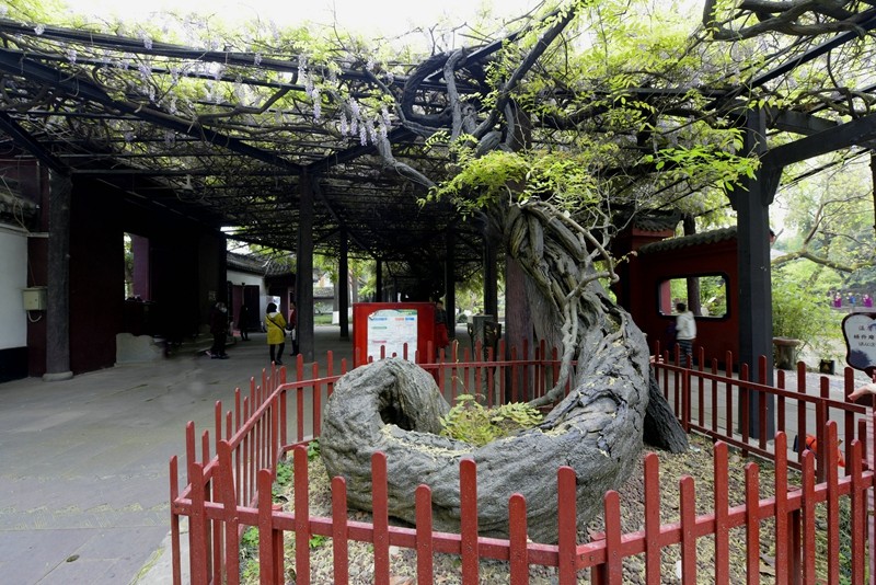 4A景区,全国重点文物保护单位。桂湖紫藤位于正门内两侧,相传为明代状元杨升庵所植,距今约有500余年历史。