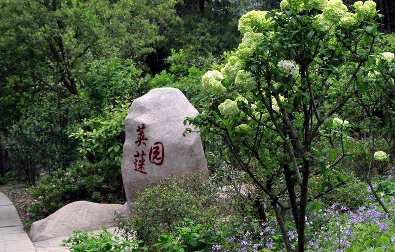 成都市植物园的荚蒾园,2018年建成,展示了40多种具有很好的观赏性荚蒾属植物,如观花的有绣球荚蒾、蝶花荚蒾、鸡树条荚蒾、琼花、粉团等,观果的有珊瑚树、短序荚蒾、金佛山荚蒾、宜昌荚蒾等。