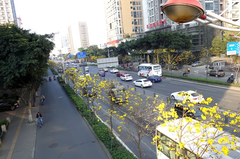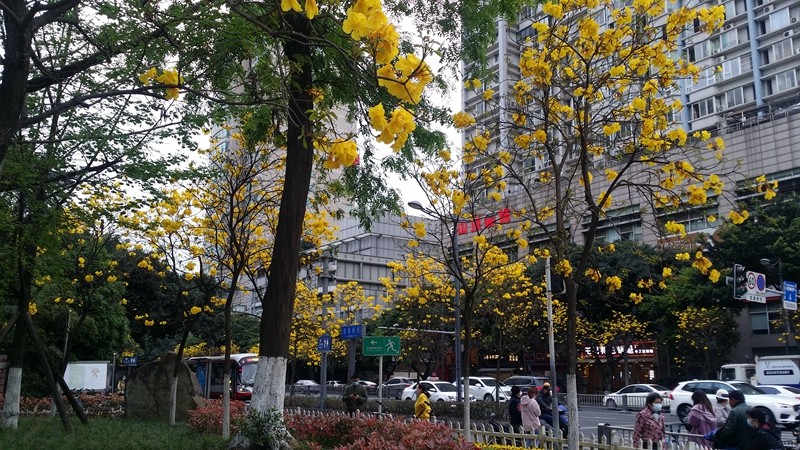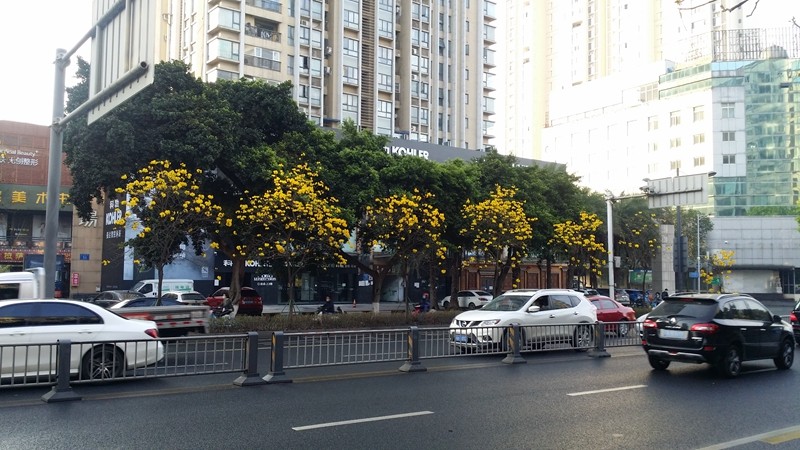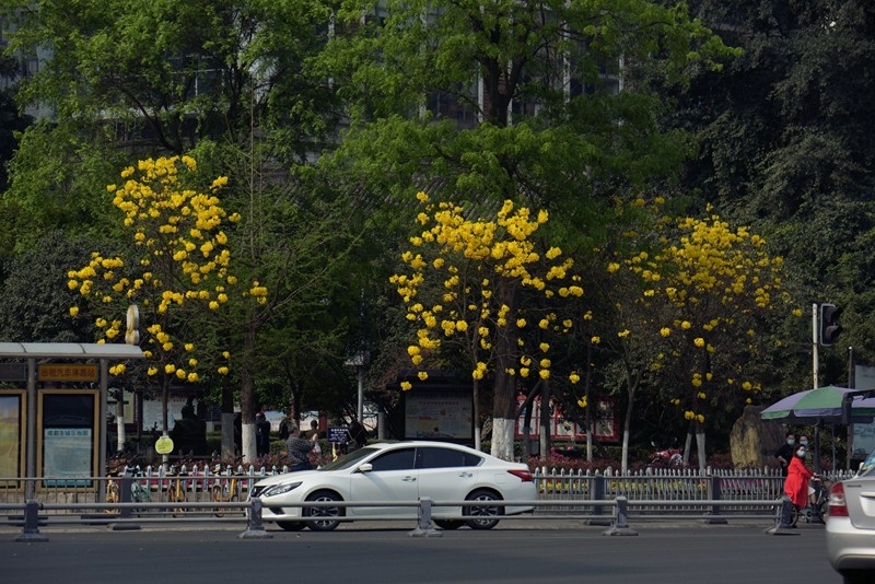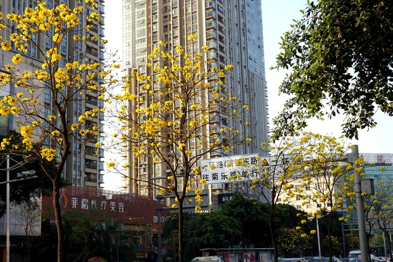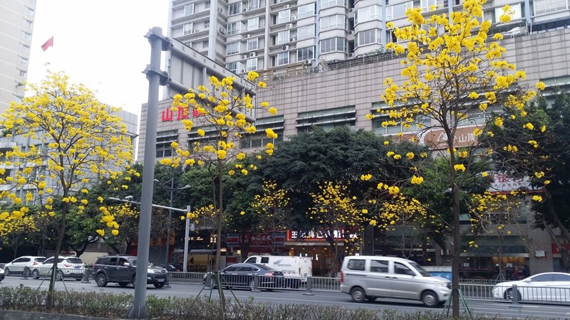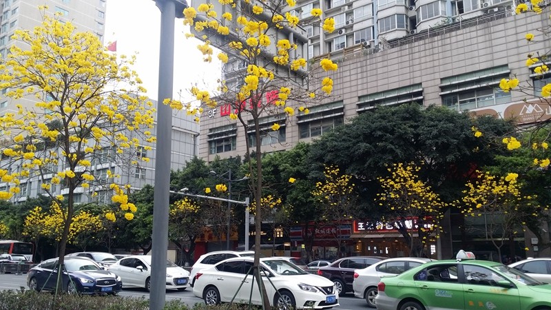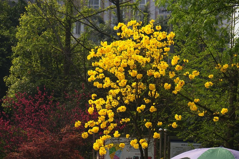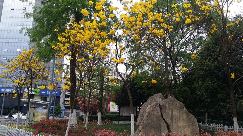 黄花风铃木是优良行道树,花色金黄明艳,花期黄花满树,适合公园,绿地等路边,水岸边的栽培观赏,也可在庭院、校园、住宅区等种植。