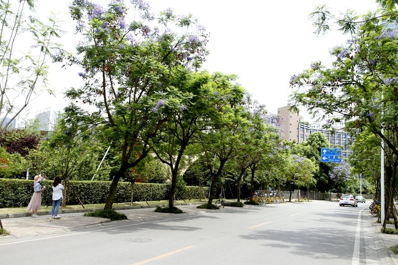 蓝花楹原产南美洲巴西、玻利维亚、阿根廷,在四川西昌也有不少种植,因有不少美图在网络流传,引起热议。在成都落户的蓝花楹也都长得不错,开花比西昌稍晚,现在是盛花期。还没亲眼领略过蓝花楹魅力的朋友赶快到市区各街道、绿地转转,如画美景正等着你呢。