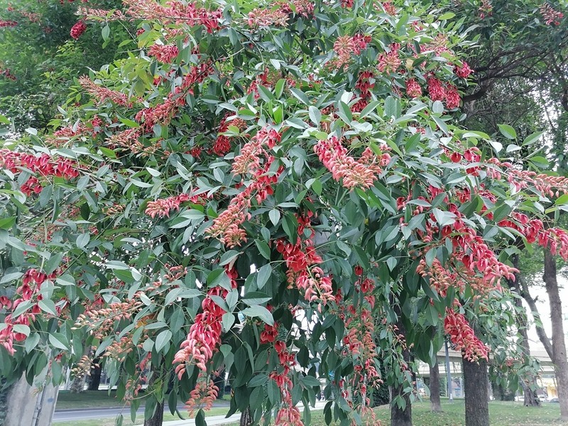 鸡冠刺桐是豆科刺桐属落叶小乔木,原产巴西,现中国华南、西南地区都有栽培,不过鸡冠刺桐喜高温,冬季受霜冻的话嫩枝会被冻伤。