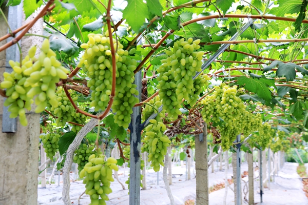 规划面积1200亩,目前可采摘葡萄大棚栽培园区300余亩,主要品种有金手指、美人指、粉红亚多密、 白罗莎里奥、东方之星、红地球、黑巴拉多、温克、维多利亚、秋红、阳光玫瑰、醉金香、巨玫瑰、赤霞珠、夏黑、京亚、甜蜜蓝宝石等20余品种。