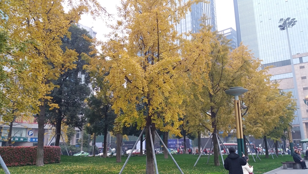 秋季金黄的银杏叶深受人们喜爱,是深秋赏景的最佳选择。自1983年成都市人大常委会将银杏定为成都市市树,成都市遍植银杏,成都周边区市县的苗圃,尤其是温江、郫县、都江堰等大量栽种银杏,成都人喜爱银杏,喜爱银杏秋季黄叶的美丽。如今市民不仅可以在各景区观赏到上千年的古银杏,在道路、公园、游园、住宅小区等也随处可欣赏到漂亮的银杏秋叶。