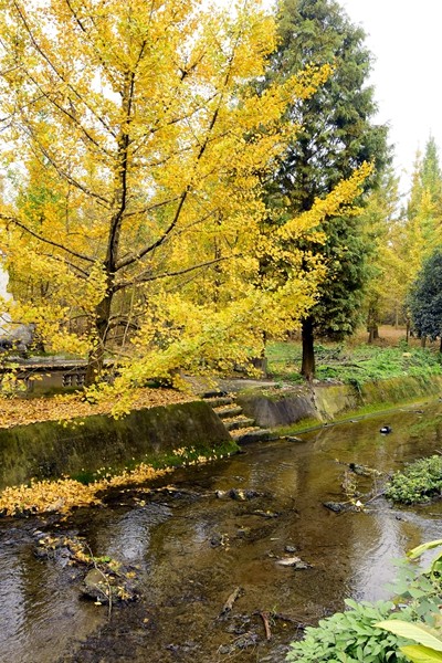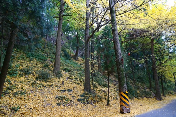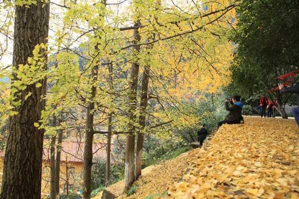 银杏坪景区内有几十株银杏,现已集中黄叶,具有一定冲击性的视觉效果。