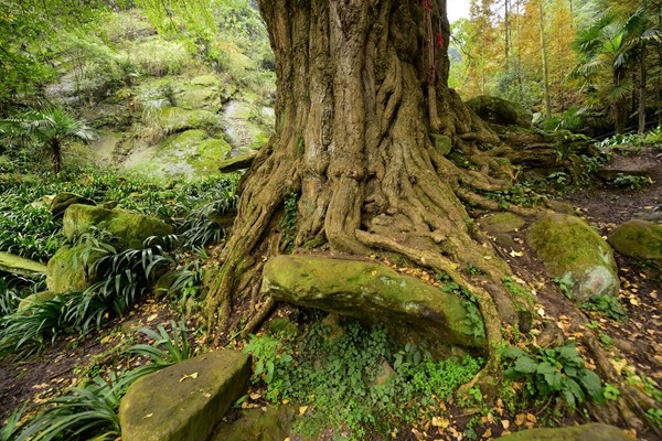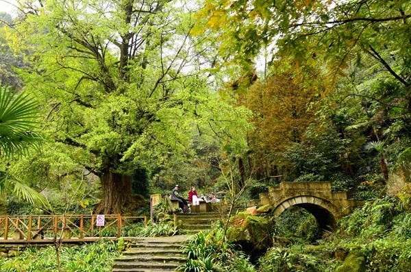 银杏广场有一株唐代银杏,于1986年从汶川县旋口白花乡“胜因寺”遗址迁入,其枝干挺拔,形态优美,有“白果大仙”之称,